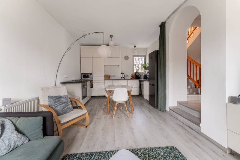 KIVÁLÓ BEOSZTÁS – KERTKAPCSOLAT - ÖRÖKPANORÁMA(Ezt az ingatlant kizárólag irodánk kínálatában találja meg!)Békásmegyer-Ófalu csendes kis mellékutcájában, 341 nm-telken kínáljuk eladásra ezt az 1990-ben épült, háromszintes, 160 négyzetméter lakóterülettel rendelkező, duplakomfortos, igazán barátságos ikerházat, saját kertrésszel, terasszal, örökpanorámával.A lakóépület épületszerkezetileg teljesen független az ikerszomszédtól, önálló falazattal és külön telekrésszel rendelkezik, ami valódi családi ház érzetet biztosít. Az ingatlan saját közműmérő órákkal felszerelt, ennek köszönhetően az ingatlan hitelezhető, banki finanszírozás is igénybe vehető.Az ingatlan 2022-ben korszerűsítésen esett át, ekkor a konyha, a két fürdőszoba és a mosókonyha teljes felújítása megtörtént, illetve az ingatlanban a teljes villamos hálózat cseréje megtörtént, 3*16A lett kiépítve.A középső és felső szinten minden helyiségben új burkolat lett letéve.Az ingatlan helyiséglistája a fotók között található. Összesen 183,71 nm, melyből 137,22 nm teljes egészében lakó tér, 46,49 nm szuterén, mely területet felével lett feltüntetve a hirdetés össz négyzetméter adataiban.A ház három szinten helyezkedik el, a telek lejtésének köszönhetően az alsó és a középső szint is közvetlen kertkapcsolattal rendelkezik, ami ritka és rendkívül praktikus megoldás.A középső szinten helyezkedik el a D-NY-i fekvésének köszönhetően a napfényes, amerikai konyhás nappali, ahonnan az igazán hangulatos terasz, gyönyörű kilátással, mely közvetlen kapcsolatot teremt a kerttel – tökéletes helyszín reggelikhez, baráti összejövetelekhez vagy esti pihenéshez. Emellett még ezen a szinten található egy nagy méretű hálószoba ami igény szerint kettéválasztható, szintén van egy kijárat a teraszra és egy fürdőszoba.A legfelső, tetőtéri szinten három külön nyíló hálószoba került kialakításra, a szintet pedig egy tágas, dupla mosdós fürdőszoba egészíti ki, amely a mindennapi használat mellett a családi komfortot is maximálisan szolgálja.Az ingatlan különleges adottsága, hogy minden szobából örökpanorámás kilátás nyílik, amely a Megyeri hídtól egészen a Rókahegy lankáiig tárul fel.Az udvarban akár három autó kényelmes parkolására is van lehetőség úgy, hogy a felső kertrész és terasz teljes értékű zöld marad.Az ingatlan kiváló infrastruktúrával rendelkezik, a belváros gyorsan és kényelmesen elérhető. A 243-as buszmegálló mindössze három perc sétára található, ahonnan HÉV-vel körülbelül 15 perc alatt elérhető a belváros.A közelben üzletek, orvosi rendelő, óvoda és iskola is elérhető.Természetközeli környezet: A környék számos kirándulóhelyet kínál, a Duna-part és erdei ösvények könnyen elérhetők.Ez az ingatlan ideális választás mindazoknak, akik szeretnének közel maradni a városhoz, de értékelik a természet közelségét, a nyugalmat és a tágas, családbarát életteret.Ha szimpatikusak az Ön számára a leírtak és szívesen megnézné, esetleg valamire nem kapott választ és kérdése van, keressen bizalommal elérhetőségeimen, akár hétvégén is!Díjmentes, banksemleges hiteltanácsadót és a vásárlás zökkenőmentes lebonyolításához korrekt, kedvező áron dolgozó ingatlan szakjogászt biztosítunk!