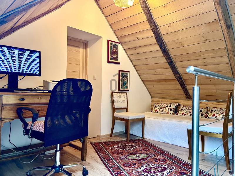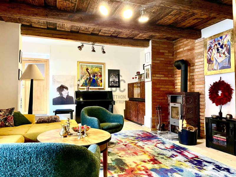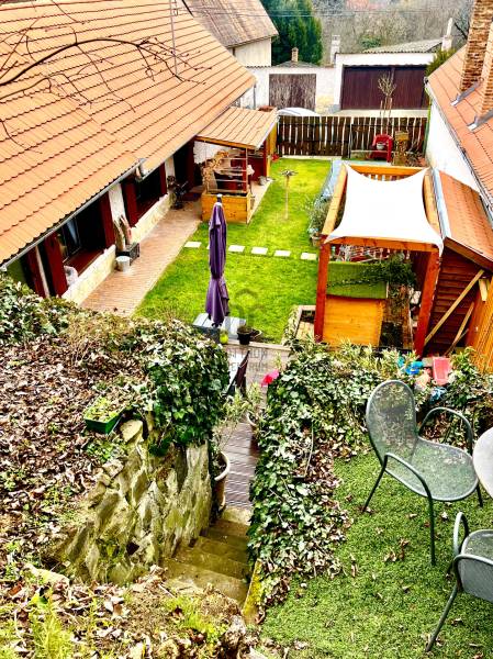 Fedezze fel ezt a kivételes lehetőséget Pest megye szívében, a festői Visegrádon, ahol a történelmi örökség találkozik a természettel és a modern életstílussal. Ez az igényes, néhol eklektikus stílusban felújított ház ideális választás lehet mindazok számára, akik egy csendes és biztonságos környezetben keresnek otthont vagy befektetési lehetőséget.A 110 nm-es ház egy 772 nm-es telken fekszik, melynek a felső részén kialakított pihenőteraszáról csodás panoráma nyílik a Dunára.A rendezett kert szépen füvesített és automata, föld alatt futó öntözőrendszerrel rendelkezik, szemet gyönyörködtető rózsákkal, hortenziákkal büszkélkedhet.A kertben van egy fatároló, egy hangulatos borospince ill. két terasz is. A WPC-vel burkolt kényelmes méretű terasz tökéletesen alkalmas akár egy nyugágyban eltöltött pihenésre, akár baráti összejövetelek, grillezések megrendezésére. A forró nyári napokra felkészülve egy szenzoros kerti zuhany is helyet kapott.A ház belső terében a prémium kivitelezés és az egyedi tervezés nyújt kellemes élményt. Rendkívül érdekes és látványos módon használták ki az eredeti parasztház tereit.A tágas nappaliban egy csempekandalló gondoskodik a melegről és a hangulatról, de a házban kialakítottak elektromos padlófűtést is ill. fűtő-hűtő klíma is a kényelmet szolgálja. A ház egyik ékköve a nagy belmagasságú, tágas és világos, gépesített konyha-étkező, ahol az eredeti kő építőelemeket meghagyták az autentikus hangulat megtartása érdekében.A fürdőszoba modern metrócsempével burkolt, praktikus kialakítása révén kényelmet biztosít. Földszinti elrendezés:Nappali: 30 nmKonyha-étkező: 20 nmWC-mosdó: 2 nmElőtér: 11 nmFürdőszoba-WC: 5.5 nmElőszoba: 6 nmHálószoba: 20 nmEmelet:Dolgozószóba: 8 nmGardrób: 16 nmTároló: 6 nmA 2021-ben kivitelezett felújítás során a következő, mindenre kiterjedő munkálatokat végezték el:- Teljes nyílászárócsere és -kibővítés. Szigetelt Thermo fa nyílászárók beépítése, kívülről gyönyörű spaletták- Tetőszerkezet és cserepek cseréje- Víz- és villanyvezetékek teljeskörű cseréje- Új meleg- és hidegburkolatok: fapadló, greslapok - Új, gépesített konyha- Fűtéskorszerűsítés (villany padlófűtés), klímaberendezések beépítése - Füvesítés, térkövezés, tárolók, teraszok kialakítása, burkolása. A környék ellátottsága kiváló, hiszen boltok, éttermek és szolgáltatások mind a közelben találhatók. A csendes környezet és a rendezett közterületek garantálják a biztonságos és nyugodt életet. Visegrád nemcsak a történelmi látnivalóiról híres, de kitűnő levegővel is rendelkezik, továbbá közbiztonsági szempontból kiemelkedően jó. Ez a ház, mely bővítési lehetőséggel is rendelkezik, ideális választás mindazok számára, akik egy meghitt új otthont keresnek, de befektetőknek is ajánlom, mivel elhelyezkedése és igényessége miatt nagyon könnyen bérbe is adható.A ház tehermentes, ami gyors és zökkenőmentes ügyintézést tesz lehetővé az új tulajdonos számára.