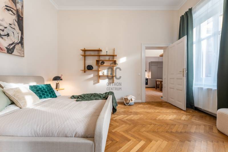 Lépj be egy olyan belvárosi lakásba, amely első pillanattól otthonosságot és harmóniát áraszt. Üdv itthon!RÖVID ÖSSZEFOGLALÓBudapest VI. kerületében, a Bajcsy-Zsilinszky úton, egy karbantartott, liftes polgári ház 3. emeletén kínálom eladásra ezt a 74 m²-es, nappali + hálós, külön konyhás, saját tárolóval és fürdőszobával rendelkező, udvari nézetű, így rendkívül csendes és világos lakást. Az ingatlan modern, letisztult és otthonos hangulatot kínál; frissen felújított belső tere azonnal költözhető állapotot biztosít.Ideális választás bárkinek, aki stílusos belvárosi otthont szeretne, vagy hosszú távon is értékálló befektetésben gondolkodik.MODERN OTTHON POLGÁRI RÉSZLETEKKELA lakás teljes körű felújításon esett át, minden eleme átgondolt tervezéssel és minőségi anyaghasználattal készült, miközben megőrizte a klasszikus polgári stílus jellegzetességeit: a 3,7 méteres belmagasságot, a halszálka parkettát és a régi típusú beltéri ajtók eleganciáját.A tágas nappali és a 20,88 m²-es hálószoba a belső udvarra néz, így teljes csendet és nyugalmat biztosítanak, a lakás előtt pedig semmilyen átjárás nem zavarja az intim, nyugodt környezetet. A fürdőszoba nagy ablakkal rendelkezik, amely egy nyitott világítóudvarra néz – akárcsak a konyha és a tároló –, így ezek a helyiségek is természetes fényt kapnak.A háló klímával felszerelt (hűt-fűt), a nappaliban kialakították a klíma előkészítését. A fűtésről és a meleg vízről Ariston kombi cirkó gondoskodik radiátoros hőleadással, a szobák pedig redőnyösek.Ez az otthon modern, letisztult és otthonos hangulatot kínál a belváros nyugodt zártságában.ÉPÜLETA lakás egy 1890-es évek elején épült, klasszikus polgári hangulatot árasztó, liftes ház legfelső emeletén található. Az épület rendezett, tiszta és pénzügyileg stabil; a társasház felelős gazdálkodásának köszönhetően folyamatosan karbantartott. A tető felújítása már megtörtént, a belső homlokzat pedig hamarosan megújul, pályázati forrásból történő festéssel.Minden fogyasztás (víz, villany, gáz) egyedi mérés alapján fizetendő, a lakás fenntartási költségei pedig kedvezőek a modern gépészetnek és energiahatékony megoldásoknak köszönhetően.Parkolás közterületen lehetséges, a bejelentett lakosok számára kedvezményes éves engedéllyel. A közelben több helyen is található garázsbérlési lehetőség, ami további kényelmet biztosít az itt lakóknak.KÖRNYÉKA Bajcsy-Zsilinszky út 59. szám alatti ingatlan kivételes elhelyezkedéssel bír Budapest szívében: mindössze néhány perc sétára a Nyugati tértől, ahol metró, villamos és számtalan buszjárat biztosít gyors és egyszerű közlekedést a város bármely pontjára.Az Arany János utca metrómegálló körülbelül 9 perc, míg az Oktogon és az Andrássy út nagyjából 12 perc kényelmes sétával érhető el. Aki a zöldet keresi, annak külön öröm, hogy a Margitsziget is könnyedén, rövid sétával vagy egyetlen villamosmegállóval elérhető—ideális futáshoz, piknikhez vagy hétvégi feltöltődéshez.A környék nemcsak közlekedés szempontjából kiemelkedő, hanem életstílusban is sokat ad:– esti kikapcsolódási lehetőségek kávézókban és borbárokban– séta a közeli Bazilika környezetében vagy a Nyugati felé vezető városi utcákon– változatos éttermek, üzletek és szolgáltatások a környék minden pontján– kulturális élmények és polgári házsorok karakteres építészeti világaEz a városi környezet ideális azoknak, akik szeretik a belváros lendületét, ugyanakkor értékelik a klasszikus utcák hangulatát. A modern lakás így egy olyan történelmi közegben helyezkedik el, ahol a múlt szépsége és a jelen kényelme természetes harmóniában találkozik.Nézd meg személyesen is ezt a hangulatos lakást. Várom hívásod!----------------------------------------------Díjmentes, bankfüggetlen hiteltanácsadással támogatjuk vevő ügyfeleinket a számukra legelőnyösebb finanszírozási döntések meghozatalában. Opcionálisan igénybe vehető kiegészítő szolgáltatásainkkal – mint ügyvédi közreműködés, energetikai tanúsítvány vagy villamos biztonsági felülvizsgálat – teljes körű szakmai támogatást nyújtunk az adásvétel folyamatának minden egyes lépésénél.A hirdetésben szereplő információk tájékoztató jellegűek. A tévedés és az árváltoztatás jogát fenntartjuk. Az esetleges elírásokért és technikai hibákért felelősséget nem vállalunk.