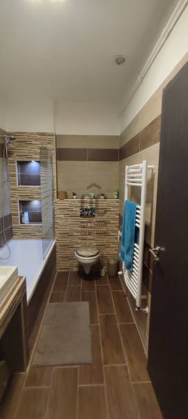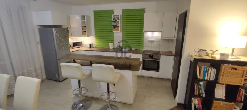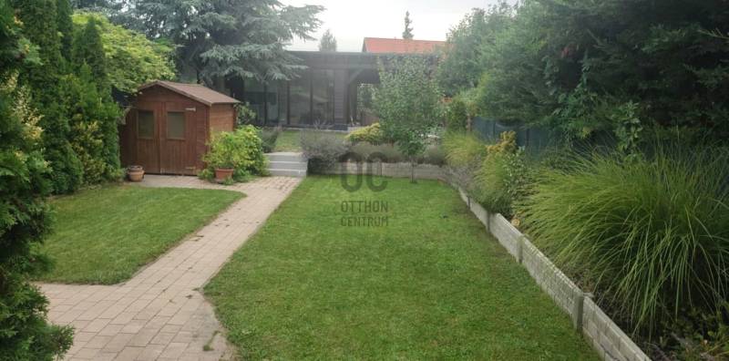 Eladó sorba került egy 110 m²-es ikerházfél Dunakeszi Alsó egyik csendes utcájában, 6 perc sétára a vasútállomástól és buszmegállótól.A Szabadságliget egyik legkedveltebb, csendes, átmenő forgalomtól mentes utcájában helyezkedik el ez a modern, 90 m²-es téglaépítésű ikerházfél, amelyhez egy 13,5 m²-es fűthető télikert, valamint a kertben egy különálló, összkomfortos, 20 m²-es könnyűszerkezetes apartmanház is tartozik.A FŐÉPŰET:A ház 2015-ben épült, 10 cm-es külső hőszigeteléssel, cseréptetővel, műanyag nyílászárókkal, minőségi burkolatokkal, mozgás- és nyitásérzékelő riasztórendszerrel. A melegvízről és a fűtésről Ariston kombi cirkó kazán, a hűtésről és rásegítő fűtésről Gree hűtő-fűtő klíma gondoskodik. A radiátoros és padlófűtés kombinációja kellemes, energiatakarékos hőérzetet biztosít, minden helyiségben redőny van, az ablakokon pedig szúnyogháló. A MELLÉKÉPÜLET:A kert hátsó részén található egy könnyűszerkezetes, hőszigetelt és teljesen önálló 20 nm-es vendégház, amely:- saját szobával,- külön konyhával,- zuhanyzós, beépített WC-vel felszerelt fürdővel,- valamint elektromos padlófűtéssel és klíma előkészítéssel rendelkezik.A melegvizet itt is Ariston, víztartályos villanybojler biztosítja, így az épület teljesen független a főépület rendszereitől. A vendégházhoz tartozik egy 17 m²-es fedett terasz, valamint egy füvesített, sziklakertes pihenő- és sütögető rész is.RENDEZETT, GONDOZOTT KERT:- automata öntözőrendszer- kerti csap- térkövezett, napelemes megvilágított közlekedőfelületek- 3 autó számára fedett beálló közvetlenül a ház mellett- szépen karbantartott gyep, dísznövényekkel beültetett magaságyás, sziklakert és 10-15 éves, magas tujákKIVÁLÓ KÖZLEKEDÉS:- vonattal 18 perc alatt elérhető a Nyugati pályaudvar,- busszal 3 perc Újpest–Káposztásmegyer,- autóval néhány perc alatt elérhető az M2-es, M3-as és az M0-s autópálya.Iá.: 169,5 M Ft.