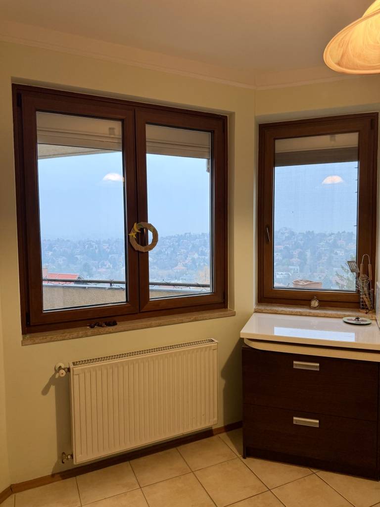 Csak a mi irodánk kínálatában elérhető ingatlan!Örökpanorámás társasházi lakás, garázzsal, autóbeállóval, tárolóval együtt egy 6 lakásos társasházban, Rózsavölgy egyik legkedveltebb zöldövezeti részén eladó!XI. és XXII. kerület határán, Rózsavölgy hegyoldali, csendes, panorámás utcájában kínálunk megvételre egy felújított állapotú, 98 m²-es örökpanorámás, egyszintes, 3 szobás, teraszos téglaépítésű lakást, amely tökéletes választás lehet azoknak, akik a természet közelségét és a városi infrastruktúrát egyszerre szeretnék élvezni.A lakás kertvárosias környezetben helyezkedik el, így a felhőtlen nyugalom garantált.A lakásból gyönyörű elvehetetlen panorámás kilátás nyílik a városra.A fűtésről gáz cirkó kondenzációs kazán gondoskodik, amely gazdaságos és hatékony megoldás.A lakás egyszintes, két hálószobás, két fürdőszobás, ideális választás lehet mindazok számára, akik egy felújított, örökpanorámás, tágas, panorámás ingatlant keresnek Budapest szívében, akik nyugalomra és csendre vágynak, de fontos számukra a gyors belvárosi elérhetőség is.Főbb jellemzők:-98 m² lakótér, világos és modern belső terek-nappali + 2 hálószoba (igény szerint 3 hálószobává átalakítható)-két fürdőszoba-két panorámás terasz (nappaliból és az egyik hálószobából)-rengeteg tárolóterület a lakásban és a garázsszinten is-teljesen gépesített, modern és tágas konyha -saját 13 m2-es teremgarázs hely, vízkiállással és elektromos kiállással + 13 m2-es -udvari beálló, saját 7 m2-es tároló és közös tárlóhelyiségek a garázsszinten-nappaliban klíma-beépített, gépesített konyhabútor-beépített, tükrös gardrób szekrények-kondenzációs kombi kazán-nappaliban alternatív fűtésként plusz elektromos padlófűtés-műanyag-aluminium ablakok-elektromos redőnyök minden nyílászárón és szúnyogháló minden helyiségben legalább egy nyílászárón -riasztóKörnyék:Csendes, zöldövezeti elhelyezkedés, panorámás utcaJátszóterek, óvoda pár perc alatt autóval elérhető, Savoya Park bevásárlóközpont a közelben A környéken található sportpályák, játszóterek és kirándulóhelyek ideálisak családosok számáraKiváló közlekedés: belváros 15–20 perc alatt elérhetőKépzeld el, hogy egy olyan otthonra bukkansz, ahol a madárcsicsergés az ébresztő és a napfelkeltét csodálva kávézgatsz reggelente és a csend és béke szigetén alszol el esténként. Az utca átmenő forgalomtól mentes, rendkívül csendes.Ez az ingatlan ritka lehetőség Rózsavölgyben, ne maradjon le róla!A környék infrastruktúrája kiváló (41-es villamos 5 perc alatt elérhető, 150, 150B, 250, 250B buszmegálló 10 perc gyalogos távolságban elérhető).Az ingatlan megtekintése előre egyeztetett időpontban lehetséges, akár hétvégén is.Amennyiben felkeltette az érdeklődését, további kérdéseivel kapcsolatban várom jelentkezését!