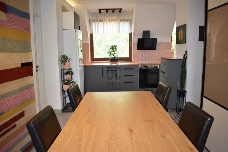 Prémium minőségű, örökpanorámás, 5 szobás lakás Sasadon– zöld környezet, csend, tágas terekHa olyan otthont keres, ahol a valódi nyugalom, a természet közelsége és a minőségi kialakítás együtt van jelen, akkor ez a sashegyi lakás kitűnő választás. Családoknak, pároknak és mindenkinek, aki értékeli a rendezett környezetet és a tágas, világos tereket.Főbb adatok-Alapterület: Bruttó 120 m²-Szobák száma: 5-Belső kétszintes kialakítás-1987-ben épült, 8 lakásos társasház legfelső szintjén-Saját garázs + kocsibeálló + külön tároló-Örökpanoráma a városra és a Sas-hegyreA lakás részleteiAlsó szint:-Tágas, amerikai konyhás nappali étkezővel-Szülői háló privát, dupla zuhanyzós fürdőszobával-Vendégszoba / dolgozószobaFelső szint:-Két különálló hálószoba-Külön fürdőszobaFelújítás és műszaki tartalom – prémium minőség kompromisszumok nélkül- ✓ Teljes körű felújítás 5 éve-Modern kondenzációs kazán, korszerű gépészet-Red Grandis + lucfenyő fa nyílászárók, automata redőnyökkel és szúnyoghálókkal-Padlófűtés + radiátor kombináció-Légkondicionálás-Belső hőszigetelés-Tölgyfa parketta és lépcső-Letisztult, világos enteriőr minden helyiségben, zöldre néző ablakokkalA lakás kivételes hangulatú: minden oldalról fák ölelik körbe, nyáron kevésbé melegszik át, télen pedig kifejezetten harmonikus hőérzetet biztosít.Tartozékok-✓ Saját, zárt garázs (15 m²)-✓ Kocsibeálló-✓ 6 m²-es külön tároló- Gondozott, közös használatú kertLokáció – Sasad, ahol valóban élmény lakniA XI. kerület egyik legkeresettebb része: csendes, zöld utcák, kiváló infrastruktúra, biztonságos környezet.A közelben:-Lauder Javne, Szent Angéla Gimnázium, Bethlen Gábor Ált. Iskola-Bölcsődék, óvodák néhány perc sétára-MOM Park, Hegyvidék Bevásárlóközpont, Tesco, SparJátszóterek, sportpályák, futó- és kerékpárutak-Kiváló közlekedés: 8E, 53, 108E, 139, 153 buszok-M1–M7 autópályák gyors elérésselKinek ideális?-Családoknak, akik hosszú távra keresnek igényesen felújított, fenntartható otthont-Pároknak, akik otthonról dolgoznak és fontos számukra a zavartalan, inspiráló környezet-Befektetőknek, akik értékálló ingatlant keresnek prémium lokációbanEz a lakás nem csak szép – kifejezetten jó energiájú, élhető, világos otthon, amely ritka adottságokkal rendelkezik. Jöjjön el, és nézze meg személyesen: a panorámát és a hangulatot képekben szinte lehetetlen visszaadni.