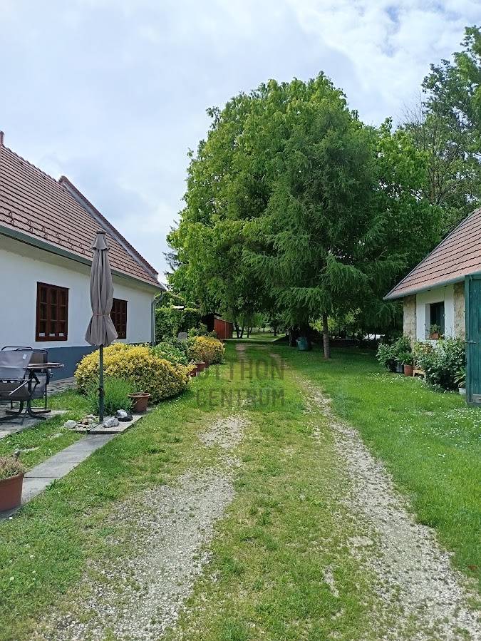 Kiemelt megbízás az Otthon Centrum Kínálatában!A ház 150 m2-es hasznos területű.Egy 35 m2-es önálló apartman van benne külön bejárattal továbbá még két hálószoba a galérián, két konyha, étkező, nappali szoba és három fürdőszoba valamint egy kamra.A ház 1820 ban épült, 2006- ban tejleskörűen fel lett újítva a műemlék védelem felügyelete mellett.Előírás szerinti szigetelést kapott a ház továbbá új fa nyílászárókat.Gáz cirkós fűtés van ami életvitelszerű használatnál havi 16000 Ft költséget jelent.Van a házban két darab újra rakott antik cserép kályha is ami kiváló alternatív lehetőséget jelenthet.A házba 3x25 Amper van bekötve.A főépülettel szemben helyezkedik el egy 50 m2-es melléképület ami jelenleg tároló és barkács műhely.Kettő garázs és egy fedett beálló van még az udvarban,Az összesen 3128 m2-es ősfás telek számtalan dologra teszi alkalmassá az ingatlant.Barnag félúton helyezkedik el Veszprém és a Balaton között.A műemlék védett házak napról napra újulnak meg, A településen intelligens igényes emberek élnek.Amennyiben érdekli az ingatlan kérem hívjon.Ez az ingatlan a \"Felező csomag\" megbízási portfólióhoz tartozik. Részletek az Otthon Centrum weboldalán.