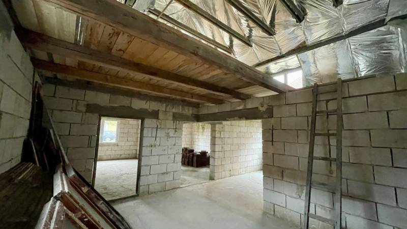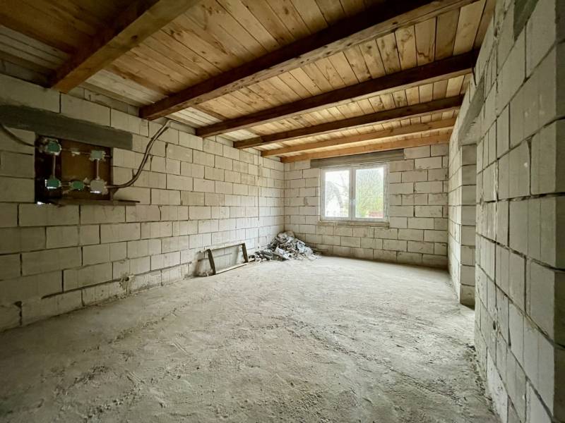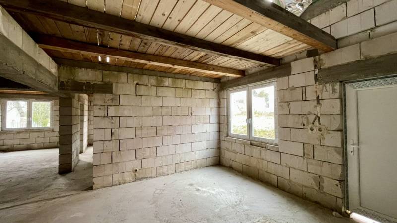 Eladó Vácduka kedvelt részén egy 148 m2-es szerkezetkész ház nagy telken!Eladásra kínálunk egy befejezésre váró, építési engedéllyel rendelkező családi házat, amelyet új tulajdonosa saját ízlésére és igényeire szabva fejezhet be. Az ingatlan egy 2398 m²-es, tágas telken helyezkedik el, a település kedvelt, aszfaltozott, csendes utcájában. A kert végében fás, erdős terület határolja a telket, amely igazi nyugalmat biztosít. A telek, méretéből adódóan, megosztható, így befektetési szempontból is kiváló lehetőség. Övezeti besorolás: Lke-1, beépíthetőség: 30 % Közművek:• víz és gáz a telken belül rendelkezésre áll, csatorna az utcában• az elektromos hálózat kiépítése előkészített, az áram a ház falán elhelyezett mérőóráig be van vezetve.A ház építése évekkel ezelőtt indult, majd hosszabb szünetet követően 2025-ben jelentős felújítás és korszerűsítés történt:• az Ytong téglából épült ház teljesen új tetőszerkezetet kapott,• héjazata cserép• elkészült a tető belső szigetelése is,• beépítésre kerültek az új, műanyag nyílászárók,• a fa födém részben már elkészült, egyes szakaszai még nyitottak, amely lehetőséget biztosít galéria kialakítására, de igény szerint a födém teljes egészében beépíthető,• az elavult, statikailag nem megfelelő falakat eltávolították, a sérült falrészeket visszabontották.Jelenlegi készültségi szintjén a házban a főfalak állnak, azonban a válaszfalak és a lépcső még nem készültek el, így a belső elrendezésben továbbra is van lehetőség kisebb módosításokra, az új tulajdonos elképzelései szerint.A ház azonnal birtokba vehető, az építési munkák késedelem nélkül, gyorsan megkezdhetők. Az ehhez szükséges dokumentumok rendelkezésre állnak.Vácduka Budapesttől mindössze 30 perc autóútra található, és Vác 5 perc távolságra van. Az M2 közelsége miatt autóval, vagy Vácról zónázó és személyvonatokkal könnyen elérhető a főváros. Rendszeres buszjárat közlekedik Vácra. Iskola, óvoda 250 m-re található, orvosi rendelő, posta 700 m távolságra van. Ez az ingatlan ideális választás lehet azok számára, akik:• saját otthonukat szeretnék kialakítani,• nyugodt, természetközeli környezetre vágynak,• befektetőknek, akik jó elhelyezkedésű fejlesztési lehetőséget keresnek.Ha felkeltette érdeklődését az ingatlan, szívesen adunk további információt, vagy egyeztethetünk egy személyes megtekintést.Amiben segíteni tudjuk ingatlanvásárlását:• jogi háttér• földhivatali ügyintézés• ingyenes, bankfüggetlen hitelügyintézés (CSOK+, Babaváró, Otthon Start)• energetikai tanúsítvány elkészítése• biztosítás• belsőépítész