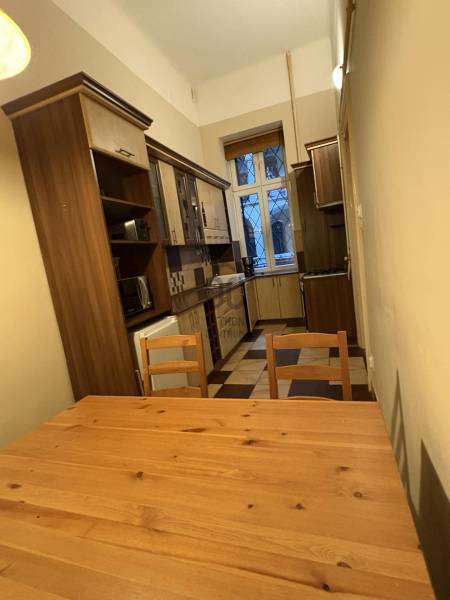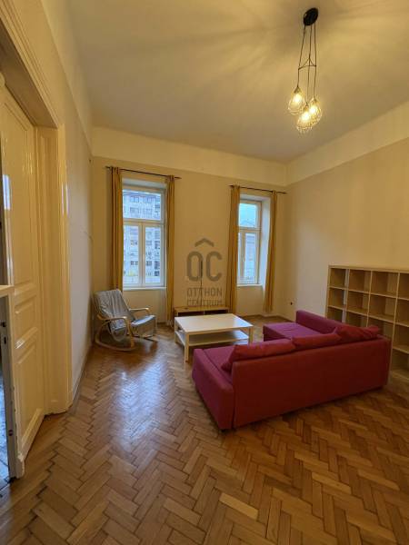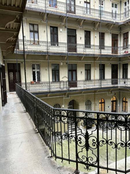 Eladó egy 79 m²-es, nagy belmagasságú, meglepően csendes lakás a József körúton, a Corvin negyed metró- és villamosmegállójától mindössze egy perc sétára. Ideális választás saját otthonnak vagy befektetésnek.A lakás különlegessége, hogy bár a körút egyik legfrekventáltabb szakaszán található, ablakai nem az utcára, hanem a jelenleg építkezés alatt álló Heinrich-udvarra néznek.Az elosztás átgondolt és jól használható. A tágas nappali mellett egy nagy méretű hálószoba és egy külön gardróbszoba is kialakításra került. A különálló konyha-étkező kényelmes teret ad a mindennapokhoz. A fürdőszobában sarokkád található, a WC külön helyiségben kapott helyet. A nagy belmagasság lehetővé teszi álló galéria kialakítását, ami tovább növeli a térérzetet és a hasznos alapterületet. A lakás adottságai alapján akár három kisebb lakásra is bontható, ami befektetési szempontból kiemelkedő lehetőséget jelent.Az ingatlan egy rendezett, klasszikus nagypolgári körfolyós társasházban található. Első emeleti elhelyezkedésű, a házban lift is működik. A fűtést cirkó és egy gáz cserépkályha biztosítja. A lakás jól átszellőztethető, nyáron kellemesen hűvös marad.A környék infrastruktúrája kiváló. A 4-6-os villamos és az M3-as metró azonnal elérhető, a közelben egyetemek, irodák, üzletek, éttermek, kulturális intézmények, a Duna-part és zöld területek is megtalálhatók. Emiatt az ingatlan kiemelten jól kiadható diákok vagy fiatalok számára.Ez a lakás ideális választás azoknak, akik a belváros pezsgését szeretnék élvezni!