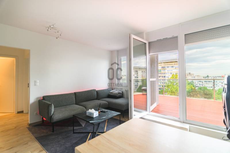 Eladásra kínálunk egy 2024-ben épült, modern és fiatalos, 92 lakásos társasházban található ingatlant Angyalföld kedvelt részén. A 40 m2-es lakás elrendezése átgondolt és praktikus: gépesített amerikai konyhás nappali, külön hálószoba, fürdőszoba és külön mellékhelyiség, valamint egy impozáns, 26 m²-es privát, panorámás terasz tartozik hozzá. A keleti tájolásnak köszönhetően a lakás világos és barátságos hangulatú.A fűtésről házközponti radiátoros rendszer gondoskodik, amelyet hűtő-fűtő klímaberendezés egészít ki. A beruházó hosszú évek óta bizonyított a piacon, minőségi referenciákkal, ami garancia a tartós értékre. Jelenleg bérlő lakja az ingatlant, aki igény esetén szívesen folytatná a bérlést, így a lakás befektetési célra is kitűnő választás. Az ablakok elektromos redőnnyel és szúnyoghálóval felszereltek.A lakáshoz tartozik egy, azonos szinten elhelyezkedő 4 m²-es tároló (+ 5M Ft), valamint egy mélygarázsban található, elektromos töltővel felszerelt gépkocsibeálló (+ 9M Ft), melyek megvásárlása opcionális.A környék infrastruktúrája kiemelkedő: a 14-es villamos, valamint a 210, 105, 30, 30A és 20E buszok gyors elérhetőséget biztosítanak. A mindennapi bevásárlás kényelmesen megoldható – Penny (2 perc séta), Aldi (6 perc), Lidl (15 perc) –, továbbá több gyógyszertár, csomagautomata és park is könnyen elérhető. Sportolásra is ideális a környezet: a Rákos-patak mentén futási és kerékpározási lehetőségek várják, emellett a Hungarian Mecca Gym és a Prestige Fitness & Wellness edzőtermek mindössze 10 perces sétára találhatók.Ez az ingatlan azok számára ideális, akik egy modern, jól elhelyezkedő lakást keresnek nagy terasszal és biztos értékű befektetési lehetőséggel Angyalföldön.A lakáshoz ingatlan bemutató videó elérhető._______________Díjmentes, bankfüggetlen hiteltanácsadással támogatjuk vevő ügyfeleinket a számukra legelőnyösebb finanszírozási döntések meghozatalában. Opcionálisan igénybe vehető kiegészítő szolgáltatásainkkal – mint ügyvédi közreműködés, energetikai tanúsítvány vagy villamos biztonsági felülvizsgálat – teljes körű szakmai támogatást nyújtunk az adásvétel folyamatának minden egyes lépésénél.