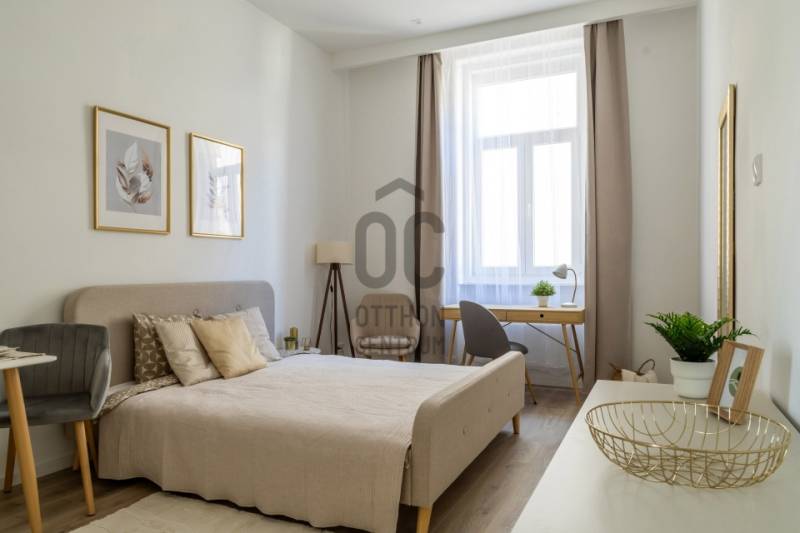 Kiadó egy 4. emeleti, 23 m2-es, teljes körű felújításon átesett nappali + 1 szobás lakás Budapest VII. kerületében, az Erzsébet körúttól egy ugrásra az Almássy térnél.A ház rendezett és tiszta, elhelyezkedése kiváló, hiszen pár perc az 1-es metró (Vörösmarty utca), a 2-es metró (Blaha Lujza tér), a 4-6-os villamos, valamint több busz és troli.Leginkább fiatal egyedülállóknak, esetleg pároknak kitűnő megoldás, a legtöbb egyetem/főiskola, színházak, egyéb szórakozási lehetőség könnyedén elérhetők.A lakás praktikus és világos, nagyon kellemes élettér, egy négyes lakóegység egyik eleme.A rendelkezésre álló tér kihasználását igényes és minőségi bútorozás segíti.A lakás rövid határidővel birtokba vehető.A szerződéskötéshez 1 havi bérleti díjjal és 2 havi kaucióval kell rendelkezni, valamint szükség lesz közjegyzői kiköltözési nyilatkozatra.A minimum bérleti idő 12 hónap, kisállatot hozni és a lakáson belül dohányozni nem lehet.További információkért keressen akár hétvégén is!Az időpont egyeztetése minimum 1-2 nappal korábban szükséges.