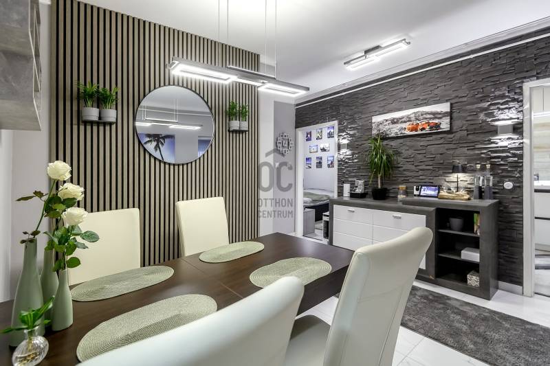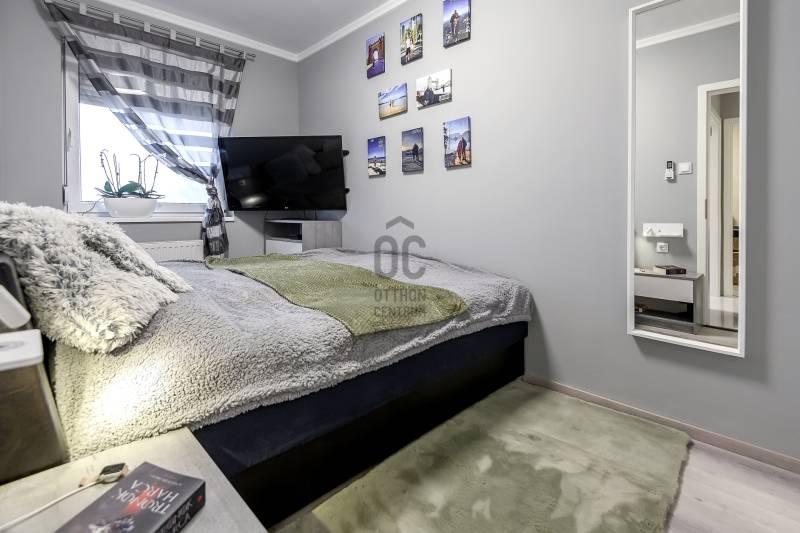 Sopron kedvelt részén, az Ágfalvi úti Lakóparkban kínálunk megvételre egy igényesen felújított, kiváló állapotú lakást, csendes, zöldövezeti környezetben, mégis kiváló infrastruktúrával.A LAKÁS FŐBB JELLEMZŐIElrendezés: nappali, 2 hálószoba, konyha, étkező, fürdőszoba, előszobaErkély: 7 m², üvegkorláttalDéli tájolásFűtés és melegvíz: Vaillant kombi gázkazánHűtés–fűtés: 2 db nagy teljesítményű, wifis Gree klíma (nappali és hálószoba)Nyílászárók: redőnnyel és elhúzható szúnyoghálóval felszerelveMINŐSÉGI KONYHABÚTORFényes fehér frontok, fékezős fiókok és ajtókBeépített Zanussi gépekGránit mosogató, Grohe csaptelepElőszobában beépített tárolóbútorHálószobában teljes belmagasságú, dupla beépített gardróbszekrényIgény esetén külön megvásárolható tároló is rendelkezésre áll, amely tovább növeli a lakás funkcionalitásátERKÉLY7 m²-es, tágas erkélyModern üvegkorlátElektromos napvitorla (3,5 m × 5 m), amely kényelmes árnyékolást biztosítA LAKÁSHOZ KÜLÖN MEGVÁSÁROLHATÓ: 19 m²-es garázsSaját villanyórávalElektromos kapuvalA lépcsőházból közvetlenül megközelíthetőA garázs előtt 2 autó parkolása biztosítottGarázs ára: 15 millió FtLOKÁCIÓCsendes, zöldövezeti környezetBoltok, buszmegálló a közelbenIskola, óvoda, saját játszótérGyors és egyszerű kijutás az M85-ös gyorsforgalmi útraVárosközpont könnyen elérhetőKINEK AJÁNLOM?Pároknak, akik modern, igényes otthont keresnekCsaládoknak, akik nyugodt, jól szervezett környezetben szeretnének élniBefektetőknek, kiváló kiadhatósága miattÖsszegzésEz a lakás ideális választás azok számára, akik minőségi kivitelezést, praktikus elrendezést, kiváló lokációt, valamint bővíthető tárolási és parkolási lehetőségeket keresnek Sopron egyik legkedveltebb lakóparkjában.Hitelre van szüksége?Az Otthon Centrum az ország egyik legnagyobb és legmegbízhatóbb hitelközvetítőjeként, teljes körű és díjmentes hitelügyintézéssel, biztosításkötéssel áll rendelkezésére!Kérje személyre szabott ajánlatunkat Kollégáinktól!