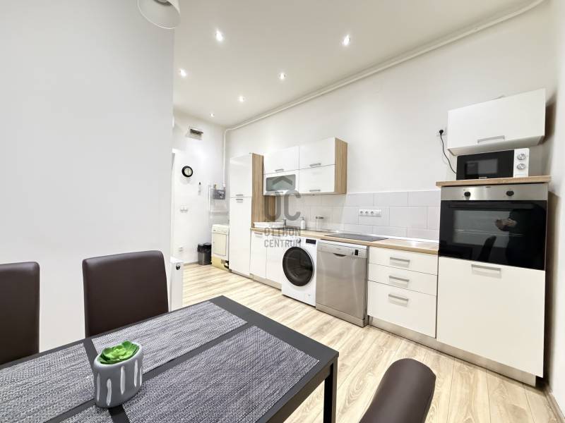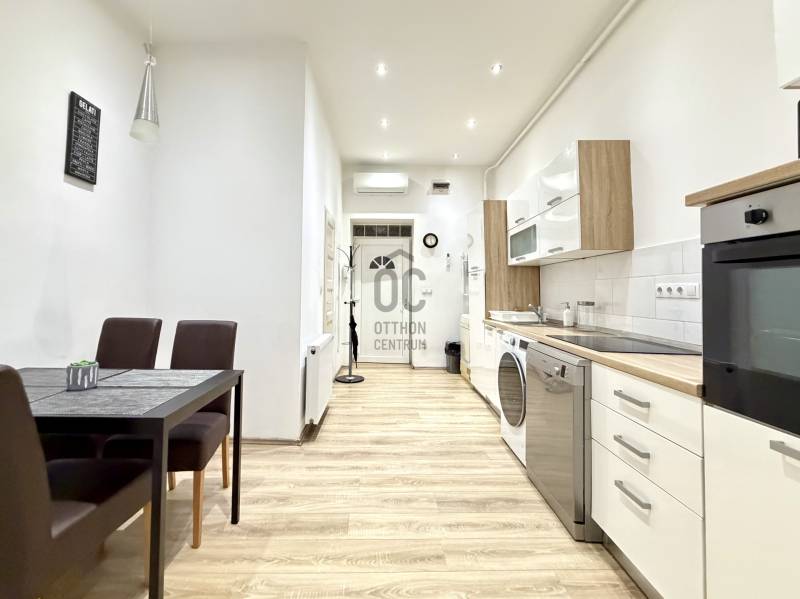 Kiadó egy 39 m²-es, igényesen felújított és bútorozott lakás Budapest VI. kerületében, Terézváros szívében, az Andrássy út és az Oktogon közvetlen közelében.Az ingatlan elrendezése praktikus és jól átgondolt: külön konyha–étkező, tágas szoba, valamint fürdőszoba WC-vel. A lakás körülbelül öt évvel ezelőtt teljes körű korszerűsítésen és felújításon esett át, így jó állapotú, azonnal költözhető.A lakás a képeken látható bútorokkal kerül kiadásra. A konyha teljesen gépesített, rendelkezésre áll mosó-szárítógép, mosogatógép, sütő, főzőlap és hűtőszekrény is, ami kényelmes és modern mindennapi használatot biztosít.A környék kiváló infrastruktúrával és közlekedési adottságokkal rendelkezik. Az M1-es metró, a 4–6-os villamos, valamint több buszjárat néhány perc sétával elérhető. Az Oktogon, az Andrássy út, a Nyugati pályaudvar, továbbá bevásárlóközpontok, üzletek, éttermek és kávézók mind könnyen megközelíthetők.Az ingatlan kiválóan alkalmas egy vagy két fő részére, akik hosszabb távon keresnek kényelmes, jól felszerelt lakást belvárosi környezetben.