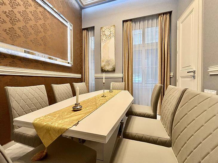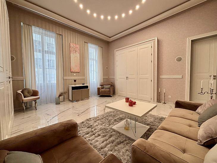 Budapest I. kerületének egyik legértékesebb részén, a hangulatos Vízivárosban, mindössze két perc sétára a Clark Ádám tértől kínálunk megvételre egy kivételes adottságokkal rendelkező, teljeskörűen felújított luxuslakást. Az ingatlan tulajdoni lapon 79 nm-es, azonban a valós, hasznos alapterülete ennél nagyobb, így a lakás tényleges mérete a mindennapi használat során jóval tágasabb érzetet nyújt.A felújítás során az eredeti polgári karakter megőrzése elsődleges szempont volt: a monumentális kétszárnyú ajtók, a klasszikus arányok és a nagypolgári belmagasság elegáns alapot adnak a modern, luxus szintű kialakításnak. A lakás két külön hálószobával rendelkezik, mindkettő saját fürdőszobával, a tágas nappali pedig beépített házimozi rendszerrel lett felszerelve, amely exkluzív otthoni élményt biztosít.A prémium anyaghasználat, az aprólékosan megtervezett részletek és az igényes belsőépítészeti megoldások minden ponton a kompromisszummentes minőséget képviselik. Az elhelyezkedés páratlan: történelmi környezet, kiváló közlekedés és a város ikonikus pontjai karnyújtásnyira. Az ingatlan ideális választás lehet elegáns városi otthonnak, reprezentatív rezidenciának vagy értékálló befektetésnek.Ez a lakás valódi ritkaság azok számára, akik a polgári eleganciát és a modern luxust Budapest egyik legjobb lokációjában keresik.