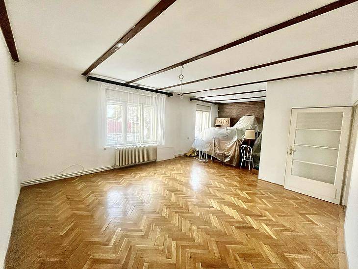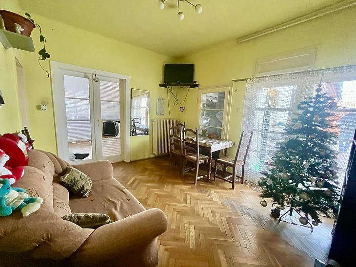 XV. kerületben, Pestújhelyen eladó egy előkertes, kétgenerációs családi ház, 742 nm-es kerttel, tégla garázzsal és 33 nm-es terasszal.A HÁZ ELRENDEZÉSE:Az első generációs lakrész bejárata az előkertből nyílik. Az előszobából elérhető egy kádas fürdőszoba, valamint az étkezős konyha, amelyből kijárat vezet a hátsó, 33 nm-es teraszra. Az előkertre néző oldalon található egy tágas nappali, valamint egy nyitott szoba.A második generációs lakrész külön bejárattal rendelkezik, amely a hátsó kertből közelíthető meg. Az előszobából a konyhába jutunk, amelyhez spejz is tartozik. Az étkezőből biztosított a kijárat a teraszra, valamint innen nyílik egy kádas fürdőszoba. Ehhez a lakrészhez két külön nyíló, tágas hálószoba tartozik.AZ ÉPÜLET JELLEMZŐI:Az ingatlan alapja a 30-as években épült, majd 1970-es, illetve a 90-es években korszerűsítették. A felújítások során megújult a tető, cserépfedést kapott, cirkó kazánt építettek be, fakeretes, gerébtokos ablakokat szereltek fel, valamint a vezetékeket is kicserélték.A terasz alatt egy 5 nm-es pince található. Az autó beállása tégla garázsban megoldott. A kert locsolásához fúrt kút, az otthoni munkálatokhoz fészer áll rendelkezésre. Az ingatlanban 380 V ipari áram elérhető.Közművek: 1 vízóra, 2 villanyóra, 1 gázóra.PARKOLÁS:Garázs és további kocsibeállók az udvaron vagy díjmentesen a ház előtti utcaszakaszonKÖZLEKEDÉS:Közelben közlekedik a 124-es busz, valamint gyalogosan megközelíthető távolságban az Újpalotai vasútállomásFINANSZÍROZÁS:Az ingatlan hitelre is megvásárolható. Bankfüggetlen tanácsadóink, az ország összes pénzintézete közül gyorsan és gördülékenyen találja meg az Önnek legmegfelelőbb konstrukciót, egyedi kedvezményekkel. A hitel közvetítés díjmentes. VEVŐINK RÉSZÉRE A KÖZVETÍTÉS DÍJTALAN!!A hirdetésben szereplő adatok tájékoztatás jellegűek!