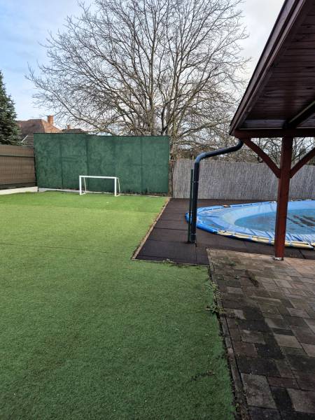 Gödöllő egyik kedvelt, csendes részén, 583 nm-es, gondozott telken kínálunk megvételre egy 106 nm-es, kétszintes ikerházat, amely kialakításában és hangulatában is jóval túlmutat a megszokott kategórián.Az ingatlan egyik legnagyobb értéke a valódi szeparáltság:az ikerház másik felével mindössze a földszinti előszoba és fürdő érintkezik, a ház pedig külön utcáról megközelíthető, önálló bejárattal rendelkezik – így az itt élők valóban családi házas életérzést élvezhetnek.A földszinten egy tágas, világos előszoba fogad, amely azonnal megadja az otthon elegáns alaphangját. A jelenleg mosókonyhaként használt fürdőszoba, a külön WC, valamint a nagy méretű, amerikai konyhás nappali** a mindennapok kényelmét szolgálja. A nappali központi eleme az impozáns lépcső, amely nemcsak funkcionális, hanem látványában is meghatározó.Az emeleten a terek tovább nyílnak:egy hangulatos közlekedőből érhető el a felső nappali, a három külön nyíló hálószoba, valamint a sarokkádas fürdőszoba, ahol egy hosszú nap végén valódi pihenés vár!A ház 2002-ben épült, kiváló műszaki állapotú, nemrég kazáncserén esett át. A komfortot padlófűtés, valamint hűtő-fűtő klíma biztosítja, a kiépített kémény pedig lehetőséget ad egy hangulatos kandalló kialakítására – tökéletes kiegészítője lehet az őszi-téli estéknek.A kert egy része műfűvel borított, könnyen karbantartható, mégis igényes megjelenésű. Az udvar igazi ékköve az egyedi kialakítású, nagy méretű, fűthető medence, amely nemcsak nyáron, hanem az átmeneti időszakokban is élményt nyújt.A kényelmet tovább növeli az elektromos kapu, a két fedett autóbeálló és a külön tároló.Ez az otthon ideális választás azoknak, akik nem csupán egy házat, hanem egy életstílust keresnek: nyugalmat, intimitást, minőséget – kompromisszumok nélkül.Ha az ingatlan felkeltette érdeklődését, hívjon bármikor telefonon!!!
