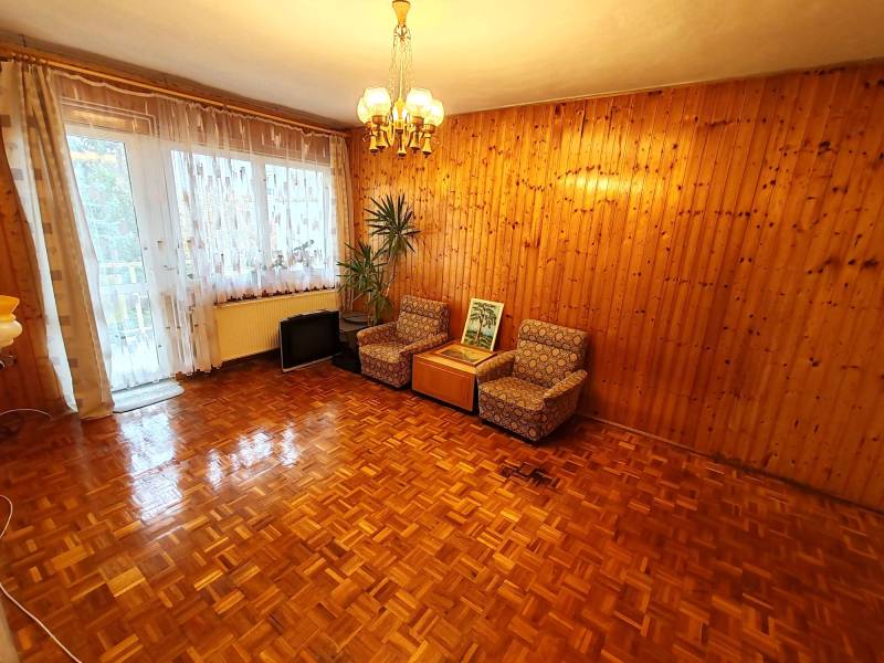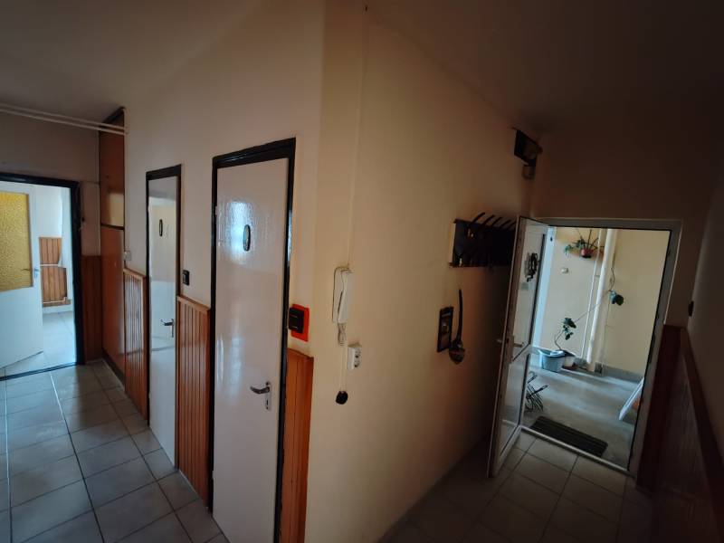 VESZPRÉM ÚJTELEP TELEPÜLÉSRÉSZÉN REMEK ADOTTSÁGÚ, ERKÉLYES TÉGLALAKÁS – GARÁZZSAL, KÉT TÁROLÓVAL, KERTRÉSSZEL EGYÜTT - ELADÓJó elosztású 3 szobás lakás vált eladóvá Újtelep csendes, kertvárosi részén egy hatlakásos, nagy (kb.1400 m2-es) kerttel rendelkező, 1972-ben épült társasház első emeletén (a középső szinten).A lakás költözhető állapotú, de a mai trendek és esztétikai elvárások alapján igény szerint felújítandó.A lakás és a hozzátartozó kiegészítő helyiségek egy nagyobb család kényelmét is maximálisan kielégíthetik.A lakáshoz a kertben egy külön használatban lévő rész is tartozik, ahol sütögető, pihenő rész vagy gyermek játszó is kialakítható.A kb. 20 m2-es garázsban szerelőakna található. A telken pedig egy autóbeálló is igénybevehető.Elkülönített pincehelyiség nagy tárolókapacitással, valamint az emeleten, közvetlenül a lakás bejárata mellett egy szintén különálló, zárható, 4,8 m2-es tároló is rendelkezésre áll.Mindezeket a vételár tartalmazza.A lakás kifejezetten jó elrendezésű helyiségekből áll. Tágas terek, napfényes, világos helyiségek teszik jó hangulatúvá.Az L alakú – beépített szekrényekkel rendelkező - előszobából lehet megközelíteni a lakás összes helyiségét: 3 nagy méretű lakószoba (19, 18 és 12,5 m2 alapterületűek), zuhanyzós fürdőszoba, külön WC., konyha (melyből kamra nyílik) került elhelyezésre. Az egyik déli fekvésű lakószoba egy 6,8 m2-es erkélykapcsolattal rendelkezik, amely a társasház rendezett kertjére enged kilátást.A lakás fűtését egyedi gázcirkó biztosítja, a hőleadás radiátorokkal történik. Nyílászárói műanyag gyártásúak. A lakószobák parkettával burkoltak.Közös költség: 10 000 Ft/hó.Elhelyezkedése: a környék infrastruktúrája kiváló, üzletek, iskola, óvoda, játszótér rövid sétatávolságra, buszmegálló 200 méterre érhetők el.Rendezett tulajdoni viszony, tehermentes, azonnal birtokba adható ingatlan.Építész- és ingatlanközvetítő irodánk minden hiteles szakmai segítséget meg tud adni, mellyel segíteni tudjuk döntését. Kérje az ingatlan részletes tájékoztató anyagát! Kövesse Balatoniingatlanguru facebook és balatoni_ingatlanguru instagram oldalunkat és iratkozzon fel YouTube csatornánkra http://www.youtube.com/@balatoniingatlanguru8238 ! Balatoni ingatlanguru – több mint közvetítő