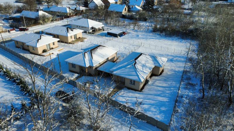 Kókán eladó 4db újépítésű ikerház külön kerített 530 m2 telkeken az Újvilág utcában!A házakat fedett gépkocsibeállóval kötik össze, így nincs közös fal.Az utcafronti házak ára 61.9m, a hátsó 58.9m Ft.-Telek mérete: 530 m²-Nettó hasznos alapterület: 97 m²-Földszintes ikerfélKivitelező és referencia:A kivitelező több azonos terv alapján készült ingatlant valósított meg Sülysápon és KókánElérhető támogatások:-CSOK Plusz-Otthon StartSzerkezet és szigetelés:-Falazat: 30 cm nútféderes tégla-Födém: fafödém-Tetőfedés: antracit színű betoncserép-Homlokzat: 15 cm EPS hőszigetelés-Padló: 10 cm Austrotherm AT-N100 szigetelés-Vízszintes födém: 25 cm ásványgyapot szigetelésNyílászárók:-Hat légkamrás, háromrétegű üvegezéssel szerelt ablakokFűtés:-Monoblokkos hőszivattyús rendszer-PadlófűtésAlap műszaki tartalom (választható keretösszegekig):-Hidegburkolat: 3.000 Ft/m²-Melegburkolat: 3.000 Ft/m²-Csaptelepek: 15.000 Ft/db-Kád vagy zuhanyzó: 40.000 Ft-Beltéri ajtók: 35.000 Ft/dbElektromos kiépítés:-Szobánként 3 konnektor-Nappaliban 4 konnektor + internet és kábel TV kiállás-Konyhában 6 konnektor-Világítás helyiségenként 1 pont-Kábeltévé előkészítésTovábbi lehetőségek:-Magasabb kategóriájú műszaki tartalom is választható a különbözet finanszírozásával-Riasztórendszer előkészítés-Kapumozgató elektronika előkészítésIgény esetén komplett tervdokumentáció és részletes műszaki leírás biztosítottÁtadás:2026. II. negyedévTeljes körű ingyenes tanácsadás, hitelügyintézésIntor Ingatlan