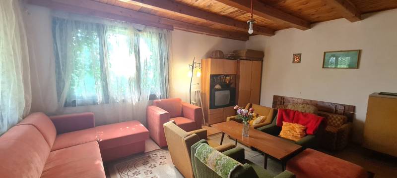Hangulatos vidéki ház!Székesfehérvártól 11 km-re, Sárszentmihályon, buszmegállótól 700 m-re, 880 m2-es szép, jó kialakítású részben panorámás telekre, az 50-es években épült, a nyolcvanas években bővített egyszintes, jellegzetes, nappali kétszobás, 75 m2 hasznos lakóterű, 20m2-es terasszal, DK-i tájolású családi ház, pincével, eladó.Az utcáról az udvaron át megközelíthető házba, a fedett teraszról léphetünk, az előtérbe, melyből a nappali egy szoba és a fürdőszoba érhető el. A szobába belépve pedig a harmadik szobát érjük el.A ház az 50-es években épült vályogból, fa födémmel.1980-ban a házat bővítették, az akkori kornak megfelelően rendbe rakták, modernizálták.A ház egyik fele téglából a másik vályogból épült, fa nyílászárokkal, cserépfedéssel, a fűtését cserépkályha biztosítja, a meleg vizet villanybojler.Közművek közül a víz, villany, csatorna bevezetésre került, a gáz az utcában megtalálható.A szobákban laminált parketta, a többi helyiségben járólapokat helyeztek el.A ház állapotát tekintve felújítandó, de remek alap egy szép otthon kialakítására, amit a ház elrendezése lehetővé tesz. KörnyékDimbes-dombos, csendes, családi házas övezet, központhoz, főúthoz, autóbusz megállóhoz közel.MegközelíthetőségTömegközlekedéssel is könnyen megközelíthető a helyijáratos autóbusszal, a buszmegálló kb. 700 m-re van.Kiváló adottságú ház, szép helyen, hívjon, és nézzük meg, tetszeni fog!sarszentmihalyhaz, olcsonhaz, kerteshaz, 3szobasház, felujítandohaz,