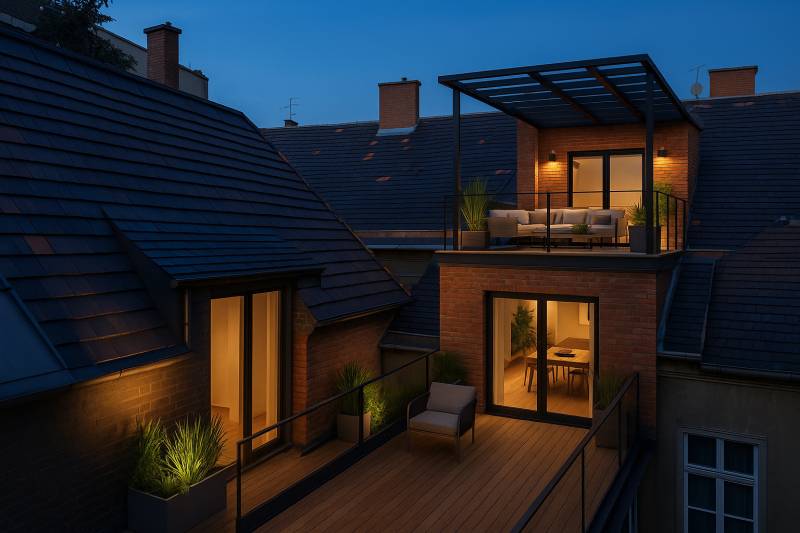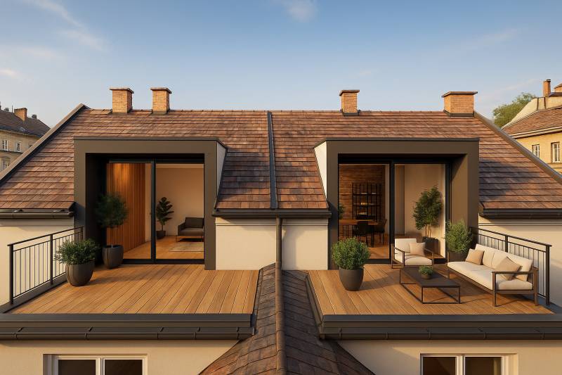 Eladásra kínáljuk Budapest II. kerületében, a Frankel Leó úton található, engedéllyel rendelkező tetőtéri lakásprojektet, amely fejlesztők és befektetők számára kivételes lehetőség.A projekt egy 117 m²-es tetőszinti ingatlan, amelyre a rendeltetésmódosítás lakásra már jogerősen engedélyezett. Az engedély tartalmazza a nyílászárók, a hőszivattyús, gázmentes gépészeti rendszer, valamint a belső elrendezés részletes terveit. A dokumentációhoz mellékelve elérhető a lift kialakításának terve is, amely a társasházi hozzáférést korszerűsíti.A tetőszerkezet adottságai alapján egy külső és két belső tetőterasz is kialakítható, amelyek exkluzív, napfényes kültéri életteret biztosítanak.A lakás 5,5 méteres belmagassága lenyűgöző térérzetet és különleges építészeti karaktert kölcsönöz a jövőbeli otthonnak.Főbb jellemzők:jogerős engedély a rendeltetésmódosításra és az építési munkák megkezdésére5,5 méteres belmagasságkorszerű, energiahatékony hőszivattyús fűtési rendszer, földgáz nélküllift kialakítására vonatkozó terv mellékelve1 külső és 2 belső tetőterasz kialakíthatóa kivitelezés azonnal megkezdhetőkiemelt lokáció: Frankel Leó út – Rózsadomb – Margit híd – Duna-part – Lukács FürdőAlapterület: 117 m²Tervezett nettó lakótér: kb. 113 m²Belmagasság: 5,5 mRendeltetés: lakás (engedéllyel)Teraszlehetőség: 1 külső + 2 belső tetőteraszParkolás: megváltással biztosítottLift: engedélyezett tervek rendelkezésre állnakEz a projekt ritka fejlesztési lehetőség: a térérzet, a teraszok és az energetikai modernitás kombinációja egyedülálló a II. kerületben. Ideális választás értéknövelő beruházásra, prémium lakásfejlesztésre vagy továbbértékesítésre.A látványtervek AI által generált képek.