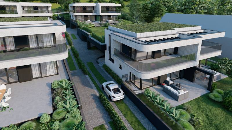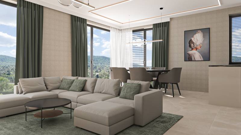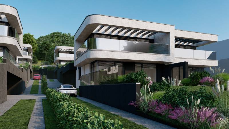 Válassza egy LUXUS otthon kényelmét, l PANORÁMÁVAL.Az ingatlan magában foglalja a csodás kilátást, a magas minőséget és a kedvelt lokáció nyújtotta nagyvárosi eleganciát.A hőszivattyúval felszerelt otthon kellemes klímát biztosít, valamint mennyezeti hűtés-fűtés gondoskodik az évszaktól független optimális hőérzet fenntartásáról.Az épület külsőleg kiemelkedően jó hőmegtartó képességű 20 cm vastag grafitos szigetelést kapott, ezzel biztosítva az ingatlan kedvező fenntartási költségei a téli hónapok során.Az építtető kiemelt figyelmet fordított a tervezés során a házak intimitásának előtérbe helyezésére, ennek nyomán a házak találkozásánál Sylka hang gátló tégla kerül beépítésre, ezzel minimalizálva a két házrész közötti áthallást.A telken 8 ikervilla kerül felépítésre, melyek mindegyikéhez sajáthasználatú kertrész valamint akár 3 autó parkoltatására alkalmas saját használatú önálló garázs is tartozik.Az ingatlan várhatóan 2025 nyarán kerül átadásra.A környék infrastruktúráját tekintve, nagyon jól ellátott a közelben számos bevásárlási lehetőség (Aldi, Lidl, Auchan) valamint óvoda iskola található.A város busszal, illetve vonattal csupán 25 perc alatt könnyedén megközelíthető.Amennyiben felkeltette érdeklődését az ingatlan, keressen bizalommal, akár hétvégén is!