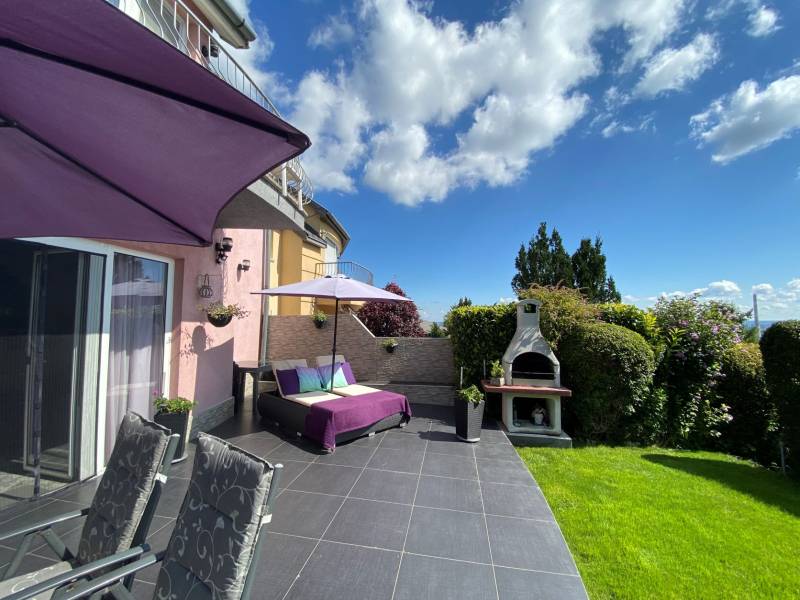LAKJON EXKLUZÍV KÖRNYEZETBEN, ELVEHETETLEN PANORÁMÁVAL.We speak english, please, do not hesitate, just call us for further informaiton.Parliamo italino , non esitate a contattarci per qualsiasi ulteriore informazione/ necessitá.Testvérhegyen, csendes, átmenő forgalomtól mentes utcában , Budapest kiemelt körzetében , az Árpád hídtól pár percre ,eladó egy 2000-ben épült, 2020-ban részben felújított, kiváló elosztású, igényes kerttel rendelkező , napfényes, jó elosztású, 300 nettó m2-es, ALACSONY REZSIJŰ CSALÁDI OTTHON, egy SZEPARÁLT IKERFÉL, nagy teraszokkal, 610 m2-es gondozott kerttel, 2 állásos garázzsal.MŰSZAKI TARTALOM:Szerkezet: 30 cm-es poroton tégla külső falak, monolit vasbeton födémekkülső-belső Knauf hőszigetelési rendszer2 rétegű üvegezésű nyílászárókWolf állókazán+melegvíztárolópadló és radiátoros fűtés, törölköző szárítókautomata garázs+kertkapuegyedi konyha nagy, ívelt pultfelülettel, beépített gépekkelszintenként állítható riasztórendszer távfelügyelettelAz épületet az ívelt falak és lépcsők, tartóoszlopok, körgaléria és szinteltolás teszik különlegessé. Ehhez a kialakításhoz igazodnak az egyedi beépített bútorok, polcrendszerek, tárolók.Nagyméretű teraszok (É,D) kertkapcsolattalKERT:A kertben az öntözést Rainbird öntözőrendszer biztosítja.A vízhasználatot leválasztott, külön leolvasású locsolómérő méri, igy ennek használata nem terheli a csatorna számlát.A ház erttervező által tervezett, gondozott kerttel rendelkezik. Nagyon kellemes nyáron a kertben pihenni, amelynek intimitását a formatervezet növények ölelése szolgáltatja.Kerti kőgrill és külön bográcsozó hellyel, kerti gyerekjátszóval, csúszdával, hintával felszerelt.GARÁZS:A ház lakói 2 autóval a garázsba és egy autóval egy külön beállóhelyre tudnak kényelmesen parkolni.KÖZLEKEDÉS.Közeli buszmegálló, óvoda, iskola (British School, AKG), orvosi rendelő,bevásárlási lehetőségek (Tesco, Eurocenter, Praktiker, Stop Shop).A sportolást a közeli erdő, a Golf Klub, konditermek, Margitsziget közelége teszik lehetővé.A HÁZ SZINTJEI:ALSÓ SZINT28,67 m2 pihenő, sport helyiség27,79 m2 garázs 2 autó számára8,54 m2 mosókonyha, kazánház7,49 m2 szauna6,60 m2 kamra5,62 m2 kamra4,41 m2 közlekedő4,14 m2 tároló4,29 m2 tároló97,55 m2 összesenFÖLDSZINT32,53 m2 nappali26,36 m2 amerikai konyha + étkező10,41 m2 közlekedő tér5,10 m2 lépcső4,72 m2 előtér3,33 m2 kamra2,56 m2 vendég WC85,01 m2 összesenEMELET19,65 m2 szoba14,73 m2 szoba9,65 m2 szoba7,08 m2 fürdőszoba5,97 m2 fürdőszoba3,13 m2 gardrób2,90 m2 gardrób9,08 m2 galéria11,97 m2 közlekedő5,06 m2 lépcső89,22 m2 összesenTETŐTÉR60 m2 a hasznos terület az összesen 90 m2-ből, ahol nappali + amerikai konyha + étkező, hálószoba, fürdőszoba, gardrób helyezkedik el.Ezt az önálló lakásnak is megfelelő szintet igény esetén le lehet választani a háztól és kialakítható külön bejárat a kertből.Az ingatlan rugalmasan megtekinthető, egyeztetés után akár hétvégén is.