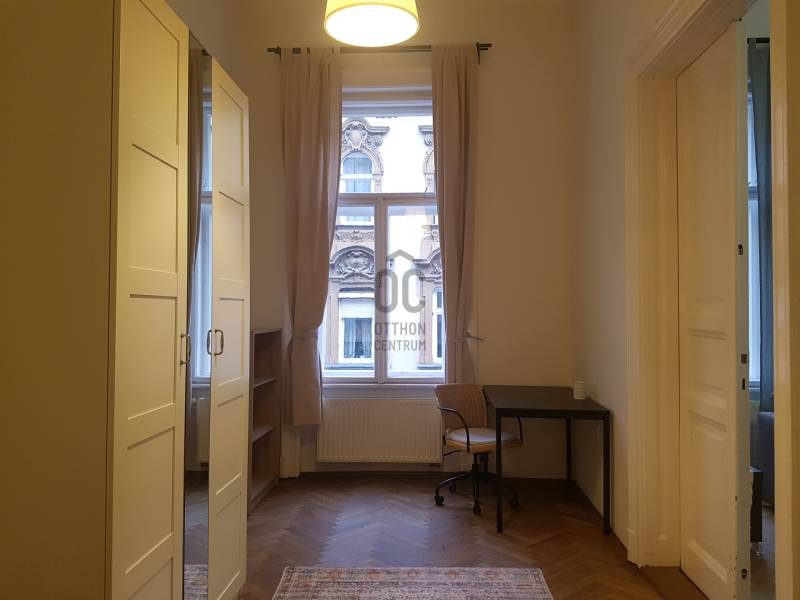 VII. kerületben OSVÁT UTCÁRA néző, CSENDES, 98 nm-es nagypolgári lakás kiadó. A lakás klasszikus alaprajzú, központi tere az impozáns nappali, két oldalán egy-egy tágas hálószobával. A konyha-étkező külön nyíló, innen nyílik még egy kisebb hálószoba. A kényelmet 2 fürdőszoba biztosítja. Az ingatlan jó állapotú, gépesített konyhával rendelkezik és a képeken látható bútorokkal berendezett. A fűtést és melegvíz ellátást gáz cirkó biztosítja. A rezsi költség fogyasztás alapján fizetendő. A Erzsébet körúton lévő társasház kívül-belül jó állapotú, liftes (proxival működik) , a lakás egy kis függőfolyosóról nyílik. A környék kiemelkedő infrastruktúrával rendelkezik, 200 méterre található a Blaha Lujza tér ahol elérhető: M2 metró, 4/6-os villamos, számtalan buszjárat, a gyönyörűen felújított Corvin Áruház és az Europeum Bevásárlóközpont stb. gyakorlatilag minden ami a mindennapi életben szükséges. Az ingatlan méretéből, elosztásából és elhelyezkedéséből adódóan ideális nagyobb család részére vagy irodai célra. Amennyiben további információra lenne szüksége vagy szeretné megnézni az ingatlant úgy kérem vegye fel velem a kapcsolatot!