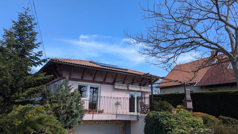 Eladó igényes, saját részre épített családi ház Budafok csendes részén – 108 m² + 36 m² mélygarázs, gyönyörű parkosított kerttelBudafok legfelkapottabb kertvárosi részén, a Tegzes utca környékén lévő, csendes kis utcában, egy 760 m²-es, saroktelken elhelyezkedő, gondosan megépített, kiváló állapotú családi ház eladó. Az ingatlan 2006-ban saját részre épült, pince + földszint kialakítású, összesen a garázzsal együtt 132 m² hasznos alapterülettel.Főbb jellemzők:-Alapterület: 132 m² (nappali + helyiségek + garázs) +25 m² terasz-Telek mérete: 760 m² – gondozott, parkosított kerttel, gyümölcsfákkal, kerti sütögetővel-Építés éve: 2006-Energetikai besorolás: DElosztás, helyiségek:-Tágas nappali-2 hálószoba + 1 félszoba (dolgozó/gardrób célra is alkalmas)-Gardróbszoba-Külön konyha + kamra-10 m²-es fürdőszoba (zuhanyzó + kád)-Külön WC-25 m²-es déli fekvésű terasz közvetlen kertkapcsolattal és sziklakerttelGépészet, extrák:-Fűtés: Gázkazán padlófűtéssel + radiátorokkal-Melegvíz ellátás: Napkollektor + melegvíz-tartály (puffertartályos rendszer)-3 db hűtő-fűtő klímaberendezés-Vízlágyító berendezés-Riasztórendszer-Műanyag nyílászárók redőnnyel, fa beltéri ajtók-Burkolatok: parketta és járólap kombináció-Hőszigetelt padlásfödém-Falazat: tégla, 10 cm külső szigeteléssel-Tető: Bramac betoncserép, sátortetős kialakítás, napkollektorral a déli oldalonParkolás, garázs:-36 m²-es, fűtött mélygarázs, elektromos garázskapukkal – akár 2 autó számára-Kerti beálló egy további autónak-Automata kapu és garázsajtókKözművek:-Teljes összközműves ellátottság: víz, villany, gáz, csatorna-Elektromos kapu és riasztó rendszerKiváló közlekedés: Mindössze 10 perc alatt elérhető Kelenföld vasútállomás és a 4-es metró végállomása, így a város bármely pontja könnyen megközelíthető. Autóval több útvonalon keresztül is gyorsan elérhető a belváros, míg az Allee bevásárlóközpont és a budaörsi nagyáruházak mindössze 10–15 perces autóútra találhatók. Közelben lévő buszjáratok: 150, 150B, 250, 250B, 251, 251A, 251BEz a Budafok kertvárosi részén található ingatlan tökéletes választás családok számára, akik minőségi kivitelezésű, jól megtervezett otthont keresnek nyugodt környezetben, mégis kiváló közlekedéssel és infrastruktúrával.Ne hagyja ki ezt a remek lehetőséget – tekintse meg személyesen is!