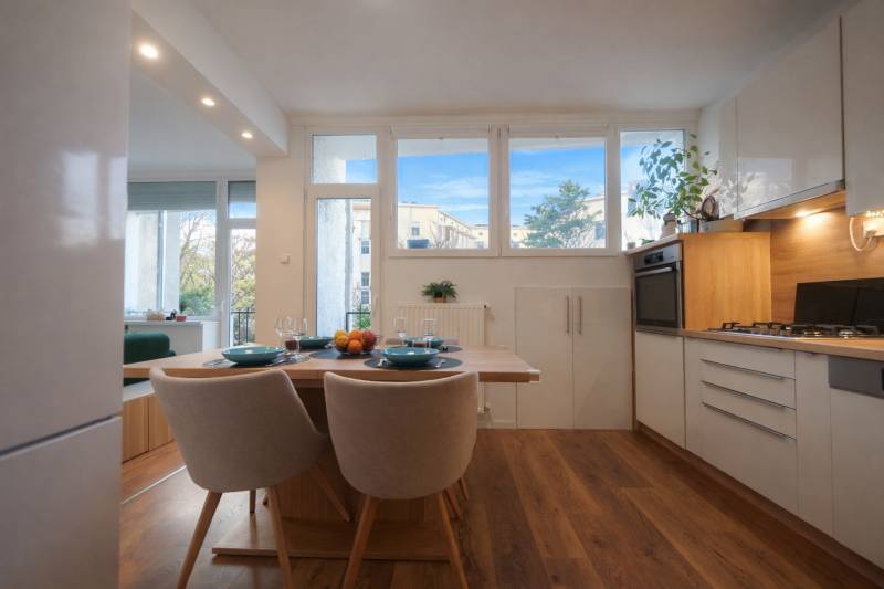 Eladó egy felújított, 81 m²-es, 3 szobás otthon a XII. kerület egyik legkedveltebb részén, Mártonhegyen, kiváló közlekedéssel!Ha régóta keresi a tökéletes ingatlant a XII. kerületben, MOST megtalálta!A lakás 2020 óta folyamatos, átfogó műszaki felújításon esett át, amely magában foglalja: - az elektromos hálózat korszerűsítését,- a fűtés modernizálását,- a nyílászárók cseréjét.Ezek mellett teljes esztétikai megújulás történt: új burkolatok, beépített bútorok, valamint egy teljesen új, modern konyha került kialakításra. A tulajdonosok minden részletre kiemelt figyelmet fordítottak – a felújítások prémium minőségben készültek.A lakáshoz két nagy méretű erkély és egy kisebb loggia is tartozik, amelyek tovább növelik az ingatlan értékét és kényelmét.A társasház rendezett, a lakóközösség igényes, a ház szigetelt, ami nemcsak esztétikailag, hanem energetikailag is jelentős előny. Az ingatlan egyik legnagyobb előnye a kiváló közlekedés: a buszmegálló közvetlenül a ház előtt található, így a belváros gyorsan és kényelmesen elérhető mind tömegközlekedéssel, mind autóval.A parkolás a társasház zárt kertjében lehetséges.A lakás riasztórendszerrel felszerelt.A nappali mellett található egy kisebb hálószoba, valamint egy nagyobb szoba, amely igény esetén könnyedén két külön szobára osztható – így akár két gyermekkel is ideális, igazán szerethető családi otthon.