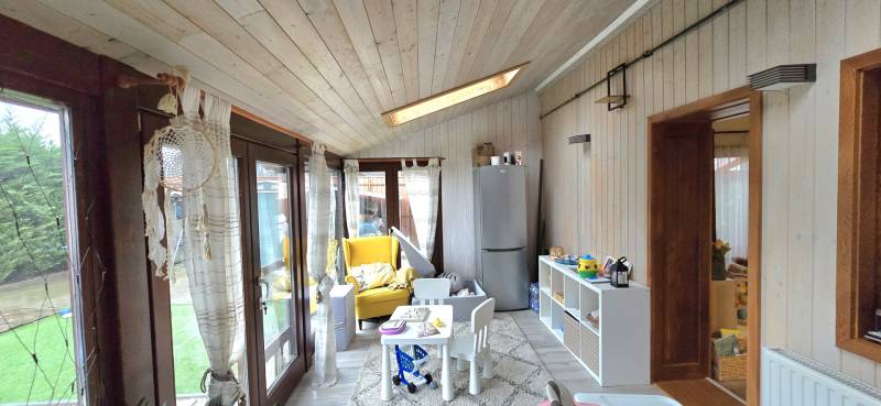 Szombathely, északnyugati részén, családiházas övezetben kínálunk egy modern, fiatalos kertesházat.Ausztriába ingázóknak ideális, hisz a határ csak 8km-re található és nem kell átvergődni a megyeszékhely forgatagán.A kertbe elektromos kapun keresztül jutunk, ahol 2 személyautónak fedett beálló lett kialakítva. A hangulatos kert meghitt intimszférát teremt, melynek része egy tároló is.Az ingatlan gázfűtés mellett rendelkezik még napkollektorral ( +puffertartály), valamint 3db modern klíma is lehetőséget biztosít a kellemes hőmérséklet elérésére.Az elmúlt évben a teljeskörű felújítás az épület szinte minden pontját érintette.A nyílászárókban lévő 3rétegű üvegezés nem csak a hőszigetelés de a hangszigetelés hatékony eleme.Az új konyhabútorban (fiókmegvilágítás, csillapított csukódás) egy korszerű víztisztító berendezés bújik meg.Tágas nappali mellett a világos, fűtött télikert növeli a teret. Nézzük címszavakban az épület főbb részeit:-Amerikai konyhás nappali-3 Szoba-2 Fürdő+Wc- Mosókonyha- Közlekedő- Dolgozószoba /Gardrób-Télikert-2 fedett gépjármű beálló- Kerti tárolóA képek magukért beszélnek. Ne habozzon, hívjon, ha kérdése merülne fel!