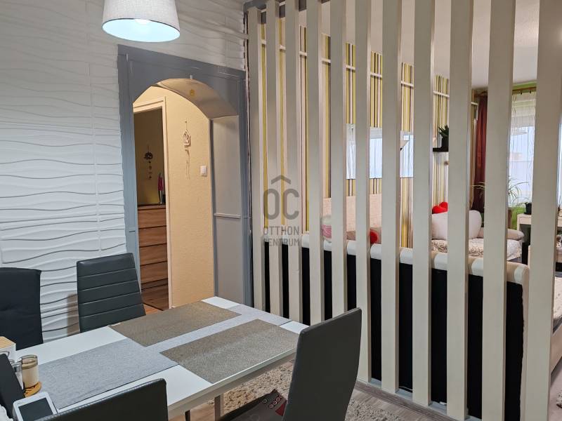 Siófok kedvelt, belvároshoz közeli részén kínálunk megvételre egy otthonos, világos, 4. emeleti téglalakást, egy teljes körűen szigetelt társasházban (homlokzat és tető is megújult).A lakás műanyag nyílászárókkal rendelkezik, redőnnyel és szúnyoghálóval felszerelve, így a komfort és az energiatakarékosság is biztosított.Az elrendezése kiváló:tágas, világos nappali erkéllyel,az étkező rész ízlésesen elválasztva fa panelekkel,külön nyíló, világos hálószoba,előszoba, felszerelt konyha, kamra,kádas fürdőszoba, valamint külön WC.A lakás fűtése konvektoros gázfűtés, mely rendkívül kedvező költségű:télen kb. 30.000 Ft/hó 25 °C-on fűtve, nyáron gyakorlatilag nincs fűtési költség.A nyári kellemes hőmérsékletről klíma gondoskodik, a meleg vizet pedig új, lapos villanybojler biztosítja.A közös költség mindössze 8.000 Ft, a parkolás ingyenes a ház előtt.A lakáshoz közös pincetároló is tartozik.A lépcsőház és a kert gondozott, karbantartott, csendes, jó lakóközösséggel.Kiváló elhelyezkedés:Tesco Express és más élelmiszerbolt a szomszédbanbuszmegálló 100 mVíztorony 500 mBalaton 1 kmEz a lakás ideális választás állandó otthonnak, nyaralónak vagy befektetésnek is.???? Ne maradjon le róla – hívjon bizalommal, és nézze meg személyesen!