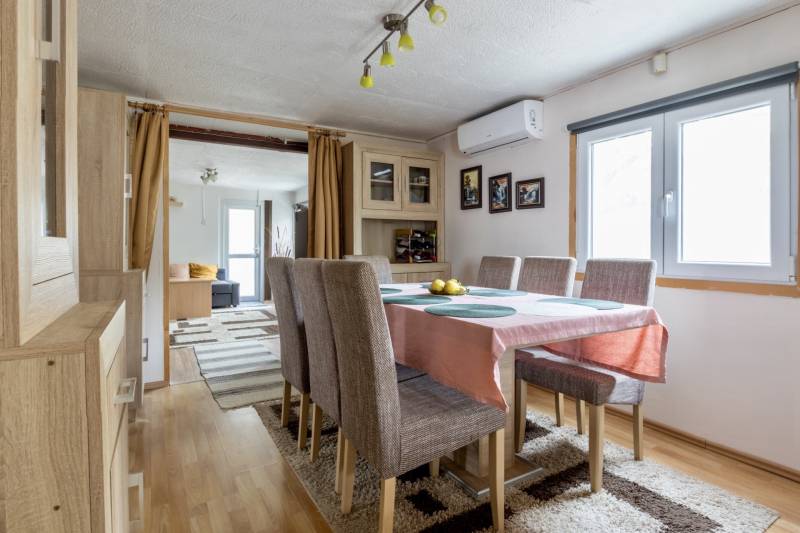 Dömsödön a Dunától egy utcányira keresi új tulajdonosát egy állandó lakhatásra alkalmas, szigetelt, 62 nm lakóterületű + 9 nm-es beépített terasszal rendelkező, könnyűszerkezetes ház, 411 nm-es telekkel!KÖRNYÉK ÉS KÖZLEKEDÉS:- Dömsöd, Pest vármegyei, családias hangulatú település, Budapesttől alig egy órára.- Rendezett, jól ellátott község városias infrastruktúrával.– A ház Dömsöd belterületi részén helyezkedik el, természetközeli környezetben a Ráckevei‐Duna mentén.– A község biztos közúti kapcsolatban van az 51-es főúttal, amely a Duna mentén futó egyik legfontosabb regionális közlekedési tengely.– A főút átvezet Dömsöd mellett, így nem terheli a belső lakóövezeteket, de könnyen megközelíthető bármelyik településrész.- Közösségi közlekedéssel (vonattal és busszal is) elérhető, de autóval a legkényelmesebb, a Népligetbe közlekedő buszjárat megállója kb. 1,5 km.A HÁZRÓL:– 1982-ben épült, könnyűszerkezetes, Ádám típusú faház.– Az ingatlant 2020-ban felújították.– A házat szigetelték, a nyílászárókat műanyagra cserélték.– Elosztása: beépített terasz hatalmas ablakokkal, konyha, tágas étkező, fürdőszoba+WC, nappali, két külön nyíló szoba, hátsó terasz és beépített tároló.– A megfelelő hőmérsékletről két hűtő-fűtő klíma gondoskodik, melyek használatával egész évben lakható a ház.– Az éves áramszámla a téli fűtéssel együtt 150.000 forintból (12 500 Ft/ hó) megoldható.– Víz, villany, csatorna bevezetve, gáz az utcában.– Az ingatlan tehermentes, igény esetén gyorsan birtokba vehető.A TELEK ADOTTSÁGAI:– Téglalap alakú, 411 m2-es gondozott síktelek.– Egy gépkocsi részére fedett beálló lett kialakítva a telken belül.Önnek akkor ajánlom ezt az ingatlant, ha zöld környezetben, csendes helyen, nyugodt otthonra vágyik és fontosnak tartja az alacsony fenntartási költségeket.AZ INGATLAN MEGTEKINTHETŐ:– személyesen,– online személyes bejelentkezéssel.FINANSZÍROZÁSI KÉRDÉSEKBEN ONLINE ÜGYINTÉZÉSSEL IS SEGÍTÜNK:– Bank-független hitelcenterünk díjmentesen versenyezteti minden bank és hitelintézet ajánlatát.– Önnek nincs más dolga, mint beszélgetni munkatársunkkal, majd a megversenyeztetett ajánlatokból kiválasztani a hosszútávon is a legmegfelelőbb konstrukciót.– Szakértőink 20 éves szakmai tapasztalattal és egyedi igényekre szabott, fogyasztóbarát lakáshitelekkel, babaváró hitellel, teljes körű CSOK PLUSZ és OTTHON START program ügyintézéssel várják Önt.Várom hívását a hét bármely napján!