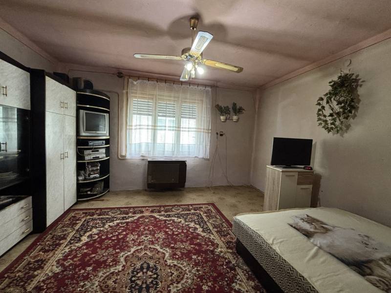 Kiskundorozsma csendes, jól megközelíthető részén eladó egy felújítandó, 2 szobás, vegyes falazatú családi ház,86,8 m² hasznos alapterülettel, amely a terasz beépítésének befejezésével akár 94 m²-re bővíthető.A ház egy 907 m²-es, két utcára nyíló, ritkaságnak számítóan nagy telken helyezkedik el.Csendes utcában található, ahol a környék folyamatosan szépül – a szomszédos házak nagy része már megújult vagy felújítás alatt áll, így az utca összképe kifejezetten kellemes.A mindennapi élethez szükséges szolgáltatások könnyen elérhetők:buszmegálló, élelmiszerbolt, óvoda kb. 500 méterre,a településközpont pedig pár perces sétával megközelíthető.Főbb jellemzők:Vegyes falazat2 szobaFa nyílászárókGázkonvektoros fűtésMelegvíz ellátás gázbojlerrelBekerített, tágas udvarKét utcára nyíló 907 m²-es telekKiváló alap felújításhoz és egyedi otthon kialakításáhozÁr: 44 700 000 FtTovábbi információért vagy megtekintésért keressen bizalommal:???? 06 70 454 2063