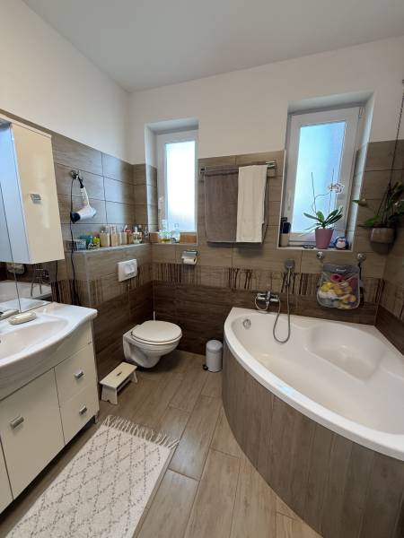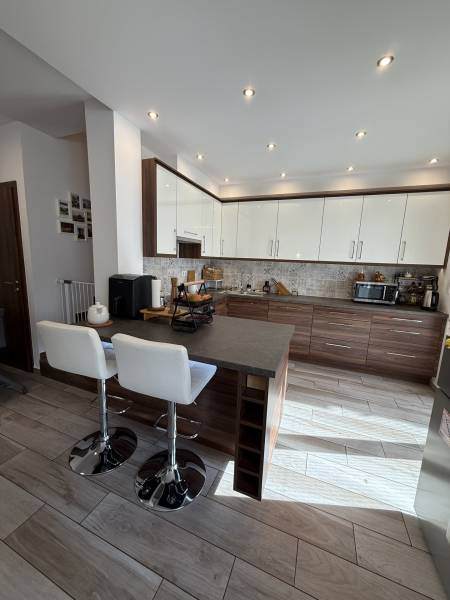Dunaharaszti csendes, fiatalos kertvárosi részén, a Bezerédi -lakóparkban található ez a kiváló állapotú modern sorházi lakás, amely ideális választás kisebb és nagyobb család számára egyaránt. Az ingatlan alapterülete 142 nm, beosztása nagyon praktikus. Három szintes, benne a nappalin kívül 4 szoba lett kialakítva, lehetőséget adva a családi, baráti együttlétekre és a pihenésre. A földszinten egy gyönyörű, elegáns, tágas konyha, fényárban úszó amerikai konyhás nappali- étkező együttese fogad minket, nagyon helyes kis terasszal, kerttel, grillezővel, igazi vendégmarasztaló hangulattal, valamint az előszobából külön nyíló fürdőszoba WC-vel. Szintén az előszobából nyílik egy ajtó a garázsba, így az autóból kiszállva közvetlenül be tudunk jönni a lakásba, míg egy másik autóval a garázs elé, az előkertbe is beállhatunk. Az alsó szint melegsége, a konyhában lévő sok kis spotlámpa, a LED lámpák, a fények játéka minden napszakban különleges hangulatot varázsolnak. A világos, barátságos és egymástól mégis szeparált hálószobák az emeleten kaptak helyet, a teljes nyugalmat biztosítva. A szülői háló erkély kapcsolatos. Ezen a szinten egy fürdőszoba és egy külön WC is ki lett alakítva. A legfelső szint, a tetőtér szintén be lett építve, itt egy hatalmas szoba, egy gardrób található, mely ideális lehet akár dolgozó, vendég, vagy hobbiszobának , ha esetleg nincs szükség ennyi hálószobára. Két fürdőszoba, összesen három WC biztosítja, hogy a reggeli rohanás során sem kell várakoznia a lakóknak, mindenki számára elegendő az élettér.A ház fűtése a téli hónapokban gázcirkóval megoldott, az alsó szinten padlófűtés, a felső két szinten radiátorok vannak, míg a nyári melegben 2 klíma nyújt felfrissülést. A házba vízlágyító is beszerelésre került, a nyílászárók redőnnyel, szúnyoghálóval felszereltek. A rendezett kis kertjében fűnyírással nem kell bajlódni, de a a sziklakert, a virágágyások mégis tökéletes kikapcsolódást biztosítanak. Az apró, minden évszakban valami szépséget rejtő díszkertben fűszernövények, virágok egyaránt helyet kaptak. A társasház a pár éve átadott Bezerédi Sportpark szomszédságában található, mely Dunaharaszti legnagyobb épített szabadtéri közösségi tere, ahol rengeteg lehetőség várja a sportolni, kikapcsolódni vágyó felnőtteket és gyerekeket . Itt szinte minden megtalálható, egy modern, zárt játszótér, ping-pong asztalok, röplabda/lábtenisz/tollaslabda pálya, streetball pálya, kispályás foci-és kézilabda pálya, közösségi terekkel, padokkal, mosdókkal.Kiváló elhelyezkedésének köszönhetően a környék ellátottsága is kiemelkedő, hiszen a közeli boltok, Lidl, ALDI, Tesco, óvodák, bölcsödék, játszóterek mindössze pár percnyi sétára találhatóak. A Dunaharaszti közlekedési lehetőségei is kedvezőek, Budapest központja gyorsan és egyszerűen megközelíthető autóval, busszal, de a vasúti közlekedés fejlesztése is folyamatban van. A környék biztonságos és csendes, ideális választás gyermekes családok számára, akik értékelik a nyugodt, zöldövezeti környezetet. Amennyiben felkeltette érdeklődését ez a kivételes ingatlan, ne habozzon kapcsolatba lépni velem!