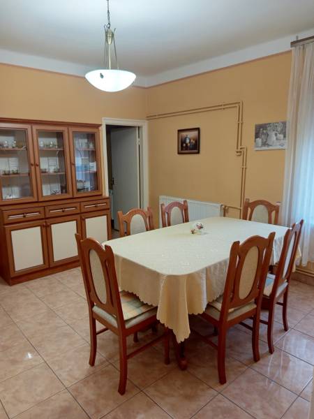 Eladásra kínálunk Tatán egy kiváló adottságokkal rendelkező, kétgenerációs családi házat, amely két külön helyrajzi számon szerepel, így akár befektetésnek, akár összeköltöző családtagok részére is ideális választás lehet.Az ingatlan főbb jellemzői:Telek mérete: 795 m²Lakótér: két különálló lakás, jól kialakított helyiségekSzerkezet:Alsó szint: 1970-ben épült, tégla falazattalFelső szint: 1993-ban került beépítésre, Habisol (könnyített beton) szerkezettelHelyiségek elosztása:Földszint:Előszoba2 hálószobaTágas étkezőKonyhaKülön WCFürdőszoba WC-velEmelet:ElőszobaTágas étkezőKonyha2 szobaNappaliFürdőszobaKülön WC2 m²-es erkélyAz emeleti szint álmennyezettel lett ellátva, a fürdőszobát felújították, valamint az egyik szoba gipszkarton válaszfallal lett kettéosztva, így jött létre két hálószoba és egy nappali.Műszaki adatok, extrák:Fűtés:Gáz cirkó (2006-ban teljes rendszer cserélve, beleértve a radiátorokat is)Alternatív fűtési lehetőség: mindkét szinten cserépkályhaNyílászárók:Földszinten: műanyag nyílászárók redőnnyelEmeleten: Sofa típusú ablakok redőnnyelTető:15 cm-es szigeteléssel ellátvaVillamoshálózat cserélveKert és külső melléképületek:A 795 m²-es udvar gondozott, részben térkövezett, és a következő extrákat kínálja:2 garázsNyári konyhaTárolókMűhelyTöbb gyümölcsfa a kertbenTöbb autó beállási lehetőség:2 autó a ház előtt2 autó a garázsokbanTovábbi parkolás a térkövezett kertbenTársasházi jogviszony, két külön lakásként használhatóAz ingatlan társasházzá van nyilvánítva, külön mérőórákkal rendelkezik, így teljesen független élettér biztosított a két szint között – ideális két generáció számára, vagy akár bérbeadásra is tökéletesen alkalmas.Összegzés:Ez a tatai ingatlan kiváló választás lehet:több generáció együttélésére,befektetésként kiadásra,vagy akár vállalkozás/családi otthon kombinációjaként.A két külön lakrész, a tágas udvar, valamint a sok melléképület és parkolási lehetőség együtt ritka lehetőséget kínál a városban.Amennyiben felkeltette érdeklődését az ingatlan, további információért illetve megtekintéssel kapcsolatban várom hívását.