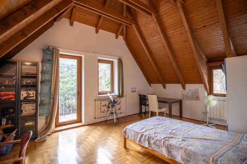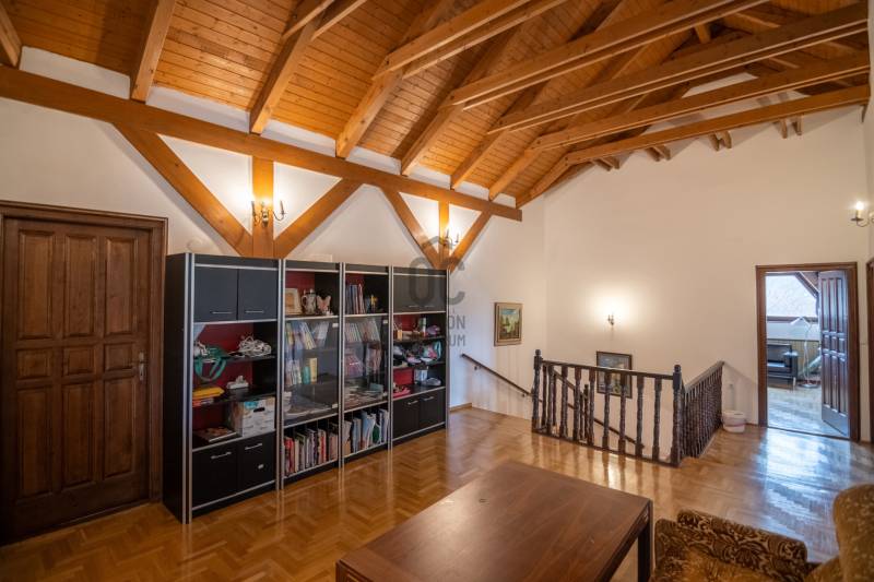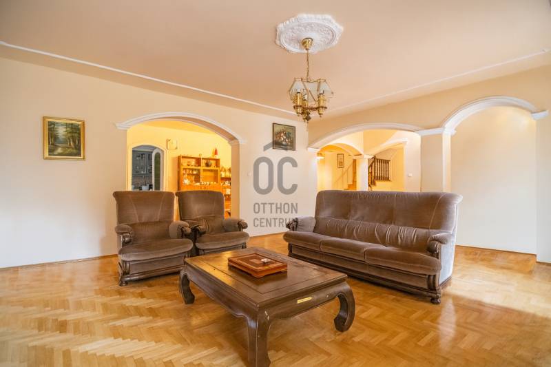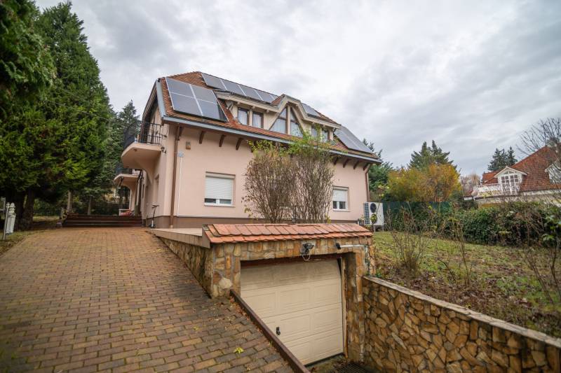Eladó családi ház ritka dupla telken (1427 m²) Máriaremetén, a II. kerület egyik legjobb részén. A ház kiváló szerkezeti állapotban van, 1990 körül épült tömör téglából, vastag falakkal. 2016-ban teljeskörű felújításon esett át: új szigetelés, 3 rétegű műanyag nyílászárók, belső felújítások, pince is megújult.Modern fűtési rendszerek: hőszivattyú, 12 kW-os napelemrendszer (30 db panel, 2022), valamint villanybojler biztosítja az energiatakarékos működést.A ház 7 szobás, 5 WC-vel, 4 zuhanyzóval, 2 nappalival és felszerelt konyhával, így ideális nagycsaládosoknak vagy befektetőknek. A környék kiváló infrastruktúrával rendelkezik: iskola, orvos, bolt, játszótér, uszoda a közelben.
