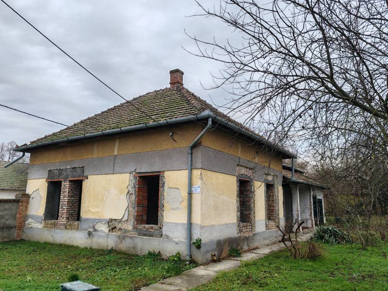 1950-es években épült családi ház- csendes, nyugodt környék- összközműves telek- 2 szoba- konyha/étkező- nappali- fürdőszoba- előszoba- mosókonyha- egyfázisú villamosáram- tégla alap és lábazat- vályog falazat (repedés- és vizesedésmentes) - pince ~30m2A ház jelenleg átépítés alatt, de az új tulajdonos saját igényei szerint fejezheti be a felújítást! A teleken a található tároló és 2 állásos garázs. Park szerű kert.5-10 perc sétával a piac, boltok, óvoda, iskola, patika, háztartási és iparcikk üzlet, buszmegálló elérhetők.A mellékelt alaprajz csak tájékoztató jellegű!A hirdetésben szereplő információkat a megbízótól kaptuk, irodánk azokért felelősséget nem vállal.Irodánkban bankfüggetlen hitel, CSOK plusz, Falusi CSOK, babaváró támogatás közvetítésével állunk ügyfeleink rendelkezésére.Amennyiben az ingatlan felkeltette az érdeklődését és figyelmét, kérem, keressen bizalommal!Nézzük meg együtt!