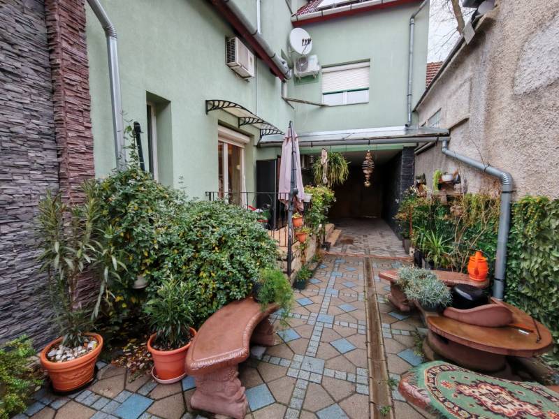 Eladó Debrecen Bercsényi Miklós utcán egy felújított 2 házból álló több emeletes, több generációs napelemes családi ház. Ára: 209.900.000 Ft. Nézze meg videónkat is: http://youtu.be/JD3xyYiIx0g Az ingatlan alap méretei: - a telek alapterülete: 300 nm, - az épületek összes alapterületei: 152nm. A fő épület hasznos alapterülete 192nm (+ 14nm fedett terasz) melyben található: A földszint (58nm): - szoba, - előszoba, - különálló WC, - konyha + ebédlő, - tároló, - spájz. Az emelet (82nm): - 3 szoba, - előszoba, - fürdőszoba (+WC). A tetőtér (52nm):- 2 szoba, - előszoba, - fürdőszoba (+WC) A második épület hasznos alapterülete 58nm, melyben található: - 2 szoba, - 2 előszoba, - tároló, - fürdőszoba + WC, A főépület 1996-ban épült, beton alappal, tégla falazattal. A kombinált nyeregtető cserép fedéssel van ellátva. A nyílászárók nagy része új műanyagra lettek cserélve, egy pár helyen pedig nagyon jó minőségű több rétegű fa nyílászárók maradtak. Az épületen található 15cm szigetelés, és egy kellemes világos színezés. A fűtést és hűtést 5 db klíma biztosítja + található a földszinten egy nagyon szép, nagy méretű kandalló is. 15 kw napelem áll rendelkezésünkre (éves elszámolással), ami lefedi az egész éves fogyasztást úgy is, hogy mellette még az elektromos autónkat is tudjuk tölteni (a tulaj is jelenleg itt tölti). Az egész épületben nagy méretű és szép igényes szobák (sok beépített bútor, klíma, szép falak, nagy terek....) jellemzik + több fürdő és wc is van számunkra. Hatalmas méretű ház, mely önmagában is több generáció számára alkalmas és még ott van mellette (egybeépítve) a második épület, ami még egy családnak elegendő. A második épületet régen épült és ehhez lett építve az új. Itt tégla alap található és tégla falazat, melyen fa födém van. De, ami a legfontosabb, hogy nagy összegekért elkezdték a felújítását. Igy kapott egy 10 cm szigetelést, kapott kívülről egy szép kő mintát, az összes ablakot és a bejárati ajtókat újjra cserélték. Az egész tetőt felújították (cserepek, faanyagok cseréje, padlás szigetelés) + erre a tetőre is került napelem. Ellenben a második épületet belülről még fel kell újítani (az egyik szobában elkezdték a gipszkartonozást), ami az új tulaj ízlése alapján valósulhat meg. Egy 300 négyzetméteres szépen karbantartott és gondozott udvar van, melyen megtalálható egy fedett kocsi beálló, egy szép és rendezett sütő és gríllező hely padokkal. Továbbá található egy kinti tároló helyiség, illetve ami még fontos, hogy található egy fúrt kút, ami igény esetén a hálózatra köthető. A benti fedett beállón kívül még az épület előtt rendelkezésre áll egy autónak az ingyenes parkolás. ÖSSZEGEZVE: Akár 3 generáció (3 család) számára is alkalmas, napelemes, szinte nulla rezsijű, nagy méretű nagyon jó állapotban lévő ingatlant kapuk Debrecen Burgundia részén. Közel találhatók üzletek, iskolák, egyetem, orvosi rendelők és viszonylag közel található a belváros és a Nagyerdő rész is. Természetesen arra is van lehetőség, hogy kiadva egy részét vagy egészét, plusz bevételünk is lehet. Fontos! Az ingatlan per és tehermentes, rövid időn belül beköltözhető! Erre az ingatlanra is igényelhető az új FIX 3% hitel vagy a CSOK Plusz, melyben mi tudunk segíteni. Ha felkeltette érdeklődését, hívja irodánkat bizalommal! Ha hitelre van szüksége éljen ingyenes, személyre szabott hitel ügyintézési szolgáltatásunkkal is.