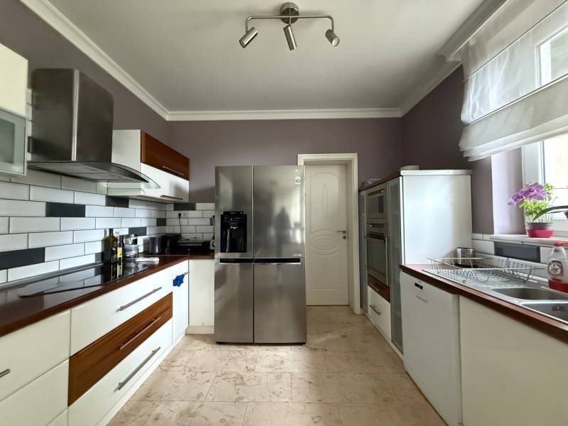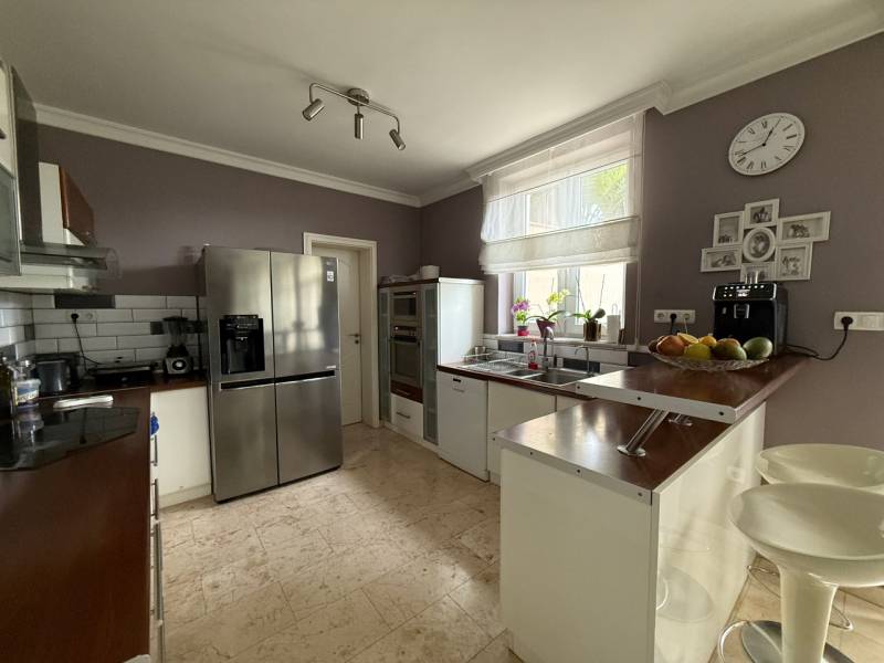 Tér együttéléshez, nyugalomhoz – többgenerációs családi ház a Bokros utcábanSzentendre egyik nyugodt, biztonságos részén található ez a háromszintes, közel 320 m²-es családi ház, amelyet kifejezetten többgenerációs használatra alakítottak ki. Három, külön bejáratú, teraszos lakóegység kapott benne helyet, így a közelség és az önállóság egyszerre tud jelen lenni a mindennapokban.A ház 2005-ben épült, masszív 38-as téglafalazattal, korszerű szigeteléssel. A fűtést kondenzációs kazán biztosítja, padlófűtéssel és klímaberendezésekkel kiegészítve, így a komfort egész évben kiegyensúlyozott. A belső terek világosak, jól tagoltak, a hangulat nyugodt és élhető.Az alsó szint praktikus kiegészítő funkciókat kínál: háromállásos garázs, borospince, konditerem és több tárolóhelyiség áll rendelkezésre. A gondozott kert és a teraszok Szentendrére és a környező zöldövezetre nyíló panorámája természetes része a mindennapoknak.A ház kamerával és sorompóval védett magánúton közelíthető meg, ami valódi nyugalmat és biztonságot ad a környezetnek.Ez az ingatlan nem egy élethelyzetre készült, hanem hosszú távra. Olyan családok számára, akik együtt szeretnének maradni, de mindenkinek fontos a saját tér is.Szentendrén ritkán adódik ilyen adottságú lehetőség – érdemes személyesen is megtapasztalni.