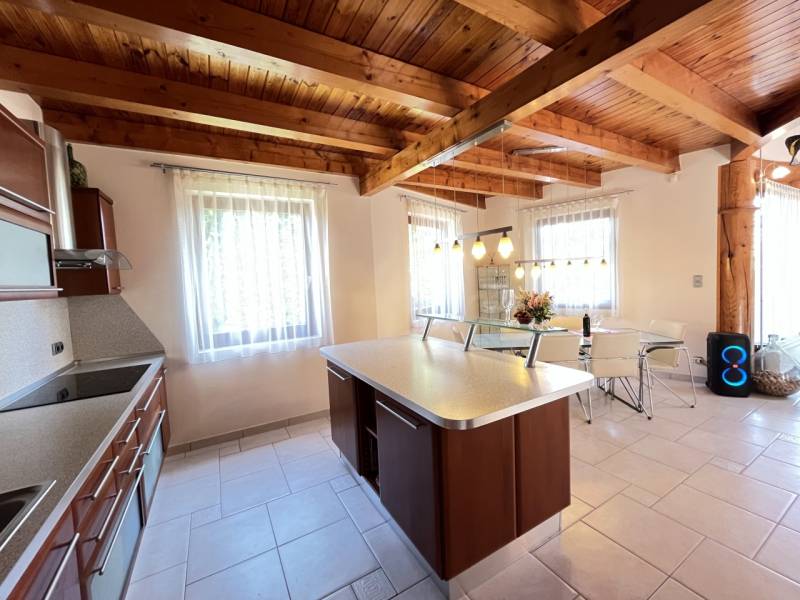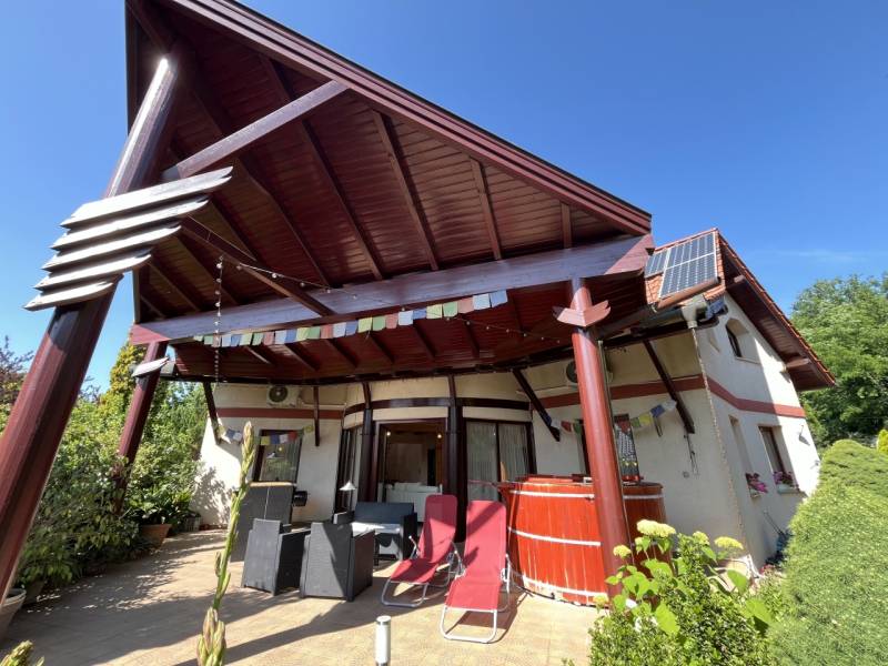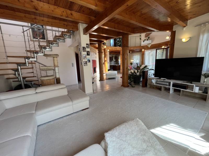 Exkluzív családi ház Veresegyház legszebb, zöldövezeti részén!Nyugodt, természetközeli környezetben kínálunk megvételre egy magas műszaki tartalommal, kifinomult ízléssel megépített prémium családi otthont, amely a tágas élettereket, az időtálló minőséget és a privát életstílust helyezi előtérbe.Reprezentatív terek & elegáns arányok:• 297 m² gondosan megtervezett lakótér• 6 méteres belmagasságú, különleges kivitelezésű, galériás nappali, kandallóval• nagyvonalú amerikai konyha kényelmes étkezővel• többfunkciós tetőtéri szint – hatalmas dolgozószoba, hálószobák, vendégtér vagy privát lakrész kialakításáraA belső terek tágas és harmonikus arányai, valamint a természetes fény jelenléte jellemzi az egész épületet.Prémium anyaghasználat & beépített megoldások:• porotherm téglából épült, szigetelt ház• különleges, fa oszlopos tartószerkezetek• számos egyedileg tervezett beépített bútor• diszkréten integrált tárolómegoldások• minőségi kivitelezés, időtálló részletekPrivát kert & kültéri luxus:• 800 m²-es, parkosított, intim kert• automata öntözőrendszer kiépítve• 60 m²-es DNy-i tájolású, fedett terasz, székely dézsával• két különálló faház - egy kisebb és egy nagyobb tároló• tökéletes helyszín pihenéshez, családi eseményekhez, vendéglátáshozKényelmes parkolás & praktikum:• garázs• fedett autóbeálló• bőséges tárolási lehetőségek a telken és az épületen belül isKorszerű technológia & fenntartható komfort:• padlófűtés kondenzációs kazánról, radiátorokkal kiegészítve• alternatív megoldások: kandalló, ionkazán• napelemek, napkollektor, klímaberendezések• víz kezelő rendszer, riasztó• energiahatékony, tudatosan kialakított gépészetKitűnő lokáció – természet és elérhetőség egyensúlya:• Csendes, zöldövezeti környezet• Budapest gyorsan és kényelmesen elérhető• Ideális külföldi vásárlók számára is, akik értékelik a repülőtér közelségét és a prémium életstílustEz az otthon azok számára készült, akik nem kompromisszumokban, hanem életminőségben gondolkodnak.
