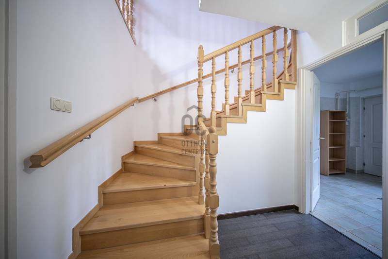Eladó Budaörs egyik csendes mellékutcájában egy 280 m2-es, alacsony fenntartási költségű, élhető méretű kerttel rendelkező családi ház. Összesen hét szoba (5 teljes és 2 fél) és egy bő 670 m2-es, jó elosztású, ápolt kert biztosítja a többgyermekes családok kényelmét és magas életminőségét. Kér garázs és a kerti beálló akár három személygépkocsit és több motorkerékpárt is elnyel - a garázsokból közvetlenül bejuthatunk a házba anélkül, hogy esőben, fagyban kellene futkároznunk.A ház klimatizált, szinte az összes szobában saját klímakészülék gondoskodik a hűtésről/fűtésről. Egy gázkazán és egy kandalló biztosítja télen a meleget - az éves gázfogyasztás 100 000 forint körül alakul, így ez a lakóház bőven belefér a rezsicsökkentésbe is! A villanyszámla a telepített napelemeknek hála szinte minden hónapban nulla forint, ami a mai gazdasági helyzetben nem egy elenyésző részlet.A kétszintes ház a következő helyiségeket kínálja:Földszint:Előtér, nappali, konyha/étkező, kamra, fürdőszoba-WC, közlekedő, gépészet, vendégszoba/dolgozó, télikert és a garázsokA masszív, tömörfából felépített, kellemesen széles lépcső vezet az emeletre, aholtágas galéria/közlekedő, óriási (22,45 m2-es) szülői háló saját fürdőszoba/WC-vel, gardróbbal, szauna (nem megépített), kis dolgozószoba (4,82 m2), nagy fürdőszoba sarokkáddal, és két nagy gyerekszoba található. A két gyerekszobából közös erkély nyílik, ahonnan a kertre van kilátás.Pár műszaki részlet:- Külső falak 38 cm-es falazóelemekből- Belső teherhordó falak 25-ös falazóelemekből- Válaszfalak 10 cm-es téglából- Hörmann szekcionált garázskapuk- Viacolor „Classico” térkövezés- 11 cm-es szigetelés- Bramac alpesi plusz tetőhéjazat- Esővízgyűjtő rendszer, ami a kert locsolását biztosítja vízköltség nélkül- Fatüzelésű kandalló a nappaliban- Kiépített multimédiarendszer a nappaliban- Padlófűtés kiegészítő radiátorokkal- Tágas konyha prémium bútorzattal, beépített gépekkel- 4 kW teljesítményű napelemrendszer- RiasztrórendszerAz ingatlan jó állapotú, minimális ráköltést igényel. További információkért, kérem, hívjon!