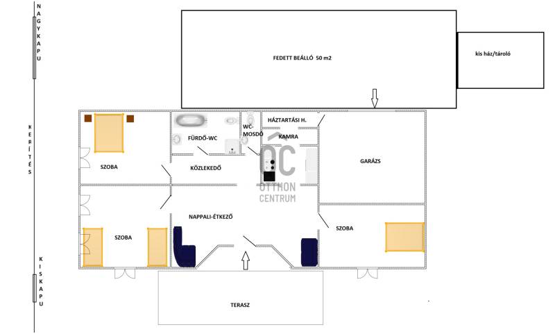 Gyömrő egyik legjobb helyén eladó egy földszintes, nappali plusz 3 szobás, dupla garázsos családi ház nagy telekkel.Az ingatlan: egy csaknem 1200 nm-es, összközműves, parkosított telek és a rajta álló 142 nm -es, cseréptetős ház.(és még sokminden más is)A telken álló, többségében örökzöld fákat és bokrokat, még az első, kertészmérnök tulajdonos ültette.. -fúrt kút is rendelkezésre áll!A főépületen kívül, van egy nettó 15 nm -es kis téglaház is amely jelenleg tárolóként működik, ezenkívül egy kerti grillsütőhely szaletli is.A falazat 40 cm-es ytong tégla plusz 5 cm dryvit szigetelés, a fűtés és a melegvíz előállítása Vailant gáz-cirkó kazánról történik, mindenhol van padlófűtés, sőt a szobákban még radiátor is, a nyílászárók közül az ablakok hőszigetelt üvegezésűek és a ház jellegéhez megfelelően fából készültek, a hűtéshez minden helyiségben légkondcionáló került felszerelésre.Az utcáról egy távirányítású kapun juthatunk be egy térburkolattal ellátott 50 nm-es!!, polkarbonát tetővel fedett részre, innen megközelíthető egy 10 nm-es pince és ugyancsak itt tudunk behajtani a kétállásos, fűtött, 26 nm-es garázsba is.(amelyből pedig bevásárlást követően praktikusan megközelíthető a ház kamrája, illetve konyhája)A lakás jó tájolású, kompakt, világos, energetikailag is jó, 3 nagy méretű szoba (16,18 és 19 nm)konyha, fürdőszoba-wc, külön wc és mosdó, közlekedő, kamra, háztartási helyiségekből áll.Az ingatlan az autópályák és Budapest közelségében, jó megközelíthető helyen fekszik, a városon belüli megközelíthetősége akár gyalogosan is kiváló.A környék kertvárosi, csendes és zöld, a kert hatalmas, az ingatlan biztonságát speciális risztók és érzékelők is fokozzák.Gyalogosan is gyorsan, 10-12 percen belül elérhető: Óvoda, Iskola, Gimnázium, Művelődési ház, Vasút állomás, Orvosi rendelő, Tófürdő, Városháza, Szabadság-Tér.