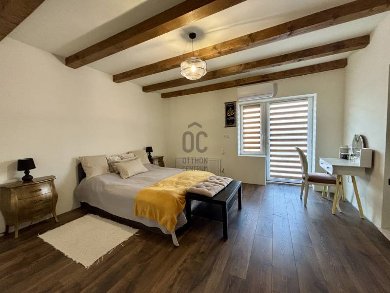 Debrecen egyik csendes, zöldövezeti részén, Halápon kínálunk megvételre egy igényesen megújított és kibővített családi házat, amely a modern műszaki megoldásokat ötvözi a kényelmes, élhető terek előnyeivel. Az ingatlan ideális választás azok számára, akik nem szeretnének kompromisszumot kötni a város közelsége és a nyugodt lakókörnyezet között.A 120 m²-es lakótér jelenleg nappali-központú kialakítással rendelkezik, a belső elrendezés pedig igény szerint több hálószobás elosztásra is alakítható. A kivitelezés során hangsúlyt kapott az energiahatékonyság, a tartósság és a minőségi anyaghasználat, így az ingatlan hosszú távon is értékálló megoldást kínál.Főbb paraméterek:- Nappali + 2 hálószoba + gardrób - 120 m² lakótér- 1017 m²-es, tágas telek melléképületekkelKiemelt műszaki tartalom:- Hőszigetelt, Porotherm 30-as falazat- Új tetőszerkezet 30 cm hőszigeteléssel- Teljesen új villamoshálózat (3×16 A)- Korszerű nyílászárók kiváló hő- és hangszigeteléssel- Prémium burkolatok és igényes belső kialakítás- Vízteres kandalló, padlófűtés és radiátoros fűtési rendszer kombinációja- Inverteres klímák a komfortos hőmérsékletért (3,5 kW/db)- 70 méteres fúrt kútA telek gondozott, melléképületekkel és új kerítéssel határolt, így akár tárolásra, akár további hasznosításra is kiválóan alkalmas.További előnyök:- Rövid határidővel költözhető- Kisebb belvárosi lakás beszámítása megoldhatóEz az otthon ideális választás mindazoknak, akik minőségi életteret, nyugalmat és értékálló befektetést keresnek Debrecen közelében.⚠️ Az ingatlan nem finanszírozható hitelből.Megtekintéshez és további információért keressen bizalommal!