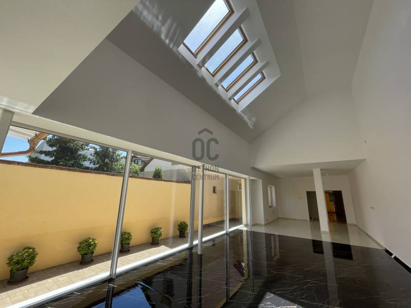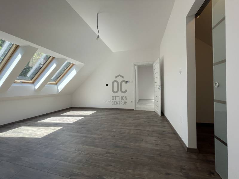 Debrecen frekventált övezetében, Nagyerdei környezetben várja új tulajdonosát ez a 2024-es, új építésű, nettó 187 m2-es, hatalmas, nagy belmagassággal rendelkező nappali+ 2 hálószobás magas műszaki tartalommal megépített, energia takarékos lakóingatlan, mely használatbavételi engedéllyel rendelkezik.Az ingatlan zártsorú beépítéssel, 349 m2-es telken épült, A + energia besorolású, földszint + emelet kivitelű.Minimális fenntartási költsége többek között a H tarifára csatlakoztatott Daikin hőszivattyúnak köszönhető, mely biztosítja az ingatlan hűtését és fűtését, padló, fal, mennyezet megoldással, továbbá szigetelt falainak és felső kategóriás külső nyílászáróinak, mely háromrétegű edzett üvegezéssel, rovarhálóval, részben távirányítható rolóval ellátott. Az ingatlan 10 kW-os napelem rendszer fogadására előkészített.Földszint helyiségei: nagyméretű nappali- étkező- konyha+ kamra, melynél a nappali igény szerint galériázható a nagy belmagasságnak köszönhetően, a nappaliból megközelíthető a polikarbonáttal fedett terasz, továbbá épített zuhanyzós fürdőszoba mellékhelyiséggel, MOFÉM csaptelepekkel.Emelet helyiségei: 2 hálószoba+ 1 gardrób, sarokkádas fürdőszoba WC- vel, gépészetnek kialakított helyiség mosókonyhával.Az ingatlanhoz tartozik egy 20 m2- es gépkocsibeálló HÖRMANN távirányítható szekcionált kapuval ellátva, elektromos autó töltésére alkalmas előkészítéssel, az udvaron több autó számára parkolási lehetőséggel, valamint az udvarról megközelíthető, pince szinten lévő tároló is.Azonnal birtokba vehető!További kérdéssel kapcsolatban keressen bizalommal!