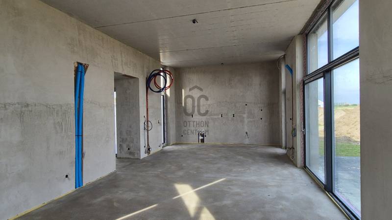 Győrújbarát Győr-Moson-Sopron megyei dombság lábánál fekvő dinamikusan fejlődő település, mindössze néhány perc autóútra Győr belvárosától! Ideális választás mindazok számára akik a város közelségéről nem akarnak lemondani, de a természetközeli, családias életformát részesítik előnyben. Győrújbarát, nívós újépítésű részén, csendes zsákutcában 744m2 telken, 154m2-es, 3 szoba+nappalis (360cm belmagasság) modern családi ház, GARÁZZSAL, +36m2 terasszal. A+++ energetikai besorolású! Az építkezés már megkezdődött, a falak állnak. Várható átadás emeltszintű fűtéskész állapotban 2025. december. Kulcsrakész befejezés kérhető. A ház az alábbi magas műszaki tartalommal épül:Ytong startelem30cm vastag tégla falazat20cm grafit homlokzat szigetelés20cm aljzat szigetelésLeier kéregelemes beton födém40cm lapostető szigetelés3 rétegű kívül-belül antrcit színű melegperemes SCHÜCO nyílászárók 0.5w/m2K üvegezésselVakolt redőny és zsalúziaszekrények elektromos előkészítésselHőszivattyús rendszer padlófűtésselFan coil hűtésKözponti hővisszanyerős szellőztetőrendszerNapelem rendszer előkészítésElektromos autó töltőNagyteljesítményű víztisztító-làgyító rendszerHálószobák közt hanggátló falazatFakro fénycsatornákRiasztó és kamera rendszer előkészítésSlate-Lite homlokzatburkokatMegtekintésért keressen bizalommal!Hitelre van szüksége? Tudunk segíteni!Az Otthon Centrum az ország egyik legnagyobb és legmegbízhatóbb hitelközvetítőjeként, teljes körű és díjmentes hitelügyintézéssel, biztosításkötéssel áll rendelkezésére!Kérje személyre szabott ajánlatunkat Kollégáinktól!