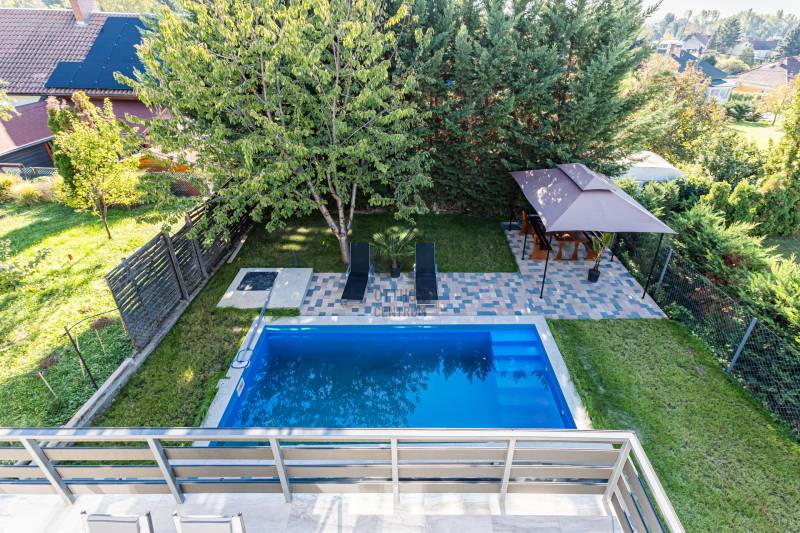 Balatonalmádi csendes, de felkapott környékén kínálunk eladásra egy igazán exkluzív, kiváló állapotú házat, amely ideális választás lehet azon ügyfeleink számára, akik magán- vagy befektetési céllal keresnek ingatlant.Ez a modern, 90 nm alapterületű ingatlan 323 nm-es telken helyezkedik el, és minden kényelmet biztosít, amire csak szüksége lehet. AMIT A HÁZRÓL TUDNI KELL : 2025 - ben teljeskörű gépészeti felújításon esett át ! Víz , villany vezetékek cseréje megtörtént ! A házban prémium minőségű anyagokkal történt a burkolatok felújítása.A konyhában új beépített bútorok mellett első osztályú tűzhely , mosogatógép lett beépítve.A tető új korcolt cserepes lemez borítást kapott.- Szintenként : 45 m2 hasznos alapterületű.- Földszint : nappali , konyha , étkező , fürdőszoba , terasz- Emelet: nappali , 2 db hálószoba , fürdőszoba , erkély- Hűtés - fűtés : klímákkal megoldott - A homlokzaton biztonsági kamera lett elhelyezveAz amerikai konyha és a tágas nappali egy légtérben helyezkedik el, ami ideális a közös családi programokhoz. A 30 nm-es teraszról és az 8 nm-es erkélyről csodálatos tóra néző kilátásban gyönyörködhet, ami a pihenés és a kikapcsolódás tökéletes helyszínévé varázsolja ezt az ingatlant. A ház prémium kivitelezésű, biztonsági ajtóval és riasztórendszerrel ellátott, így Ön és családja biztonságban érezheti magát. A rendezett kert és a medencés ház környezete ideális a szabadidő eltöltésére, legyen szó baráti összejövetelekről vagy családi programokról. Az ingatlan előtt zárt udvarban 2db autó beállására van lehetőség.A környék adottságai is figyelemre méltóak: Balatonalmádi közlekedése kiváló, a város tömegközlekedési lehetőségei könnyen elérhetők, így az ingatlan kiválóan megközelíthető.A csendes utcák és a barátságos szomszédok biztosítják a nyugodt életkörülményeket, míg a közelben található üzletek, éttermek és szabadidős lehetőségek mind hozzájárulnak a kellemes mindennapokhoz. A Balatonpart és a strand kényelmes sétával 10 perc alatt elérhető.Ez a tehermentes ingatlan ideális választás lehet mindazok számára, akik egy modern, világos és kényelmes otthont keresnek Balatonalmádiban. Ha bármilyen kérdése van, kérem, ne habozzon kapcsolatba lépni velem, szívesen állok rendelkezésére a részletek tisztázásában és az ingatlan megtekintésének megszervezésében. Hétvégén is dolgozom , zavarjanak bátran ! Az Ön új nyaralója csak egy telefonhívásnyira van!