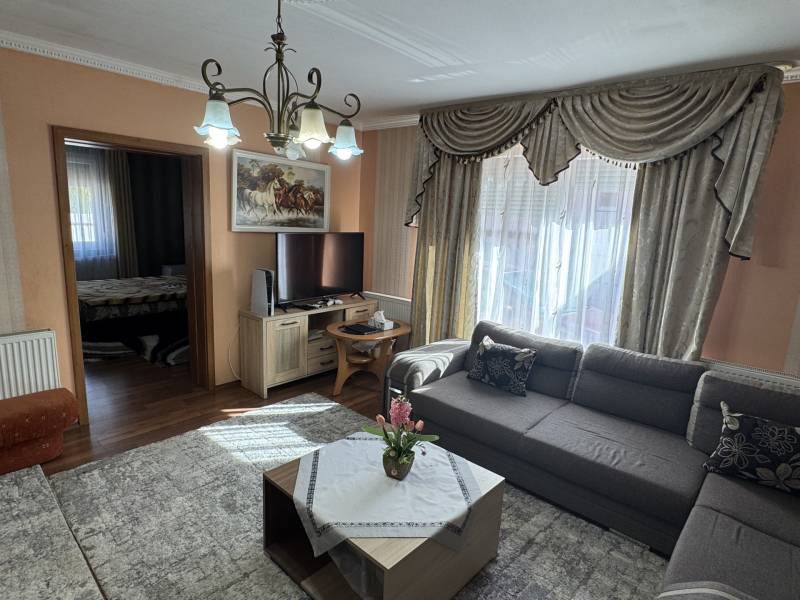 Eladó családi ház Nyíregyháza–Újkistelekiszőlő, csendes, keresett környéken!2014-ben épült, nettó 92,91 m² alapterületű, tégla építésű családi ház várja új tulajdonosát egy 740 m²-es, gondozott telken.A ház két szobával, tágas nappalival, két konyhával melyből egy a 25 m²-es fedett, zárt teraszon helyezkedik el ,fürdőszobával ,mosókonyhával külön wc-vel ,kamrával és kazánházzal rendelkezik.– kiváló választás akár többgenerációs család számára is.A fűtés vegyes tüzelésű, így gazdaságosan üzemeltethető.Klímával megoldott a hűtés.A környék rendkívül csendes, biztonságos és keresett, a belváros autóval néhány perc alatt elérhető.A szépen parkosított kertben garázs és fedett gépkocsi-beálló is helyet kapott. Ideális otthon mindazoknak, akik nyugalomra, tágas térre és jó elhelyezkedésre vágynak.A hirdetésben szereplő információk a megbízótól kapott adatok alapján készültek, pontosságukért felelősséget nem vállalunk! Az alaprajz csak tájékoztató jellegű!Amennyiben vásárláshoz hitelre is szüksége van, független hitel tanácsadónk ingyenesen tud Önnek segítséget nyújtani a legjobb konstrukciók kiválasztásában és a folyamat lebonyolításában. Irodánk kereső ügyfeleinknek teljes körű szolgáltatást nyújt, szakszerű tanácsadással, energetikai tanúsítvány elkészítésével, hitelügyintézéssel és profi ügyvédi segítséggel. Abban az esetben ha az ingatlan felkeltette érdeklődését keressen bizalommal!