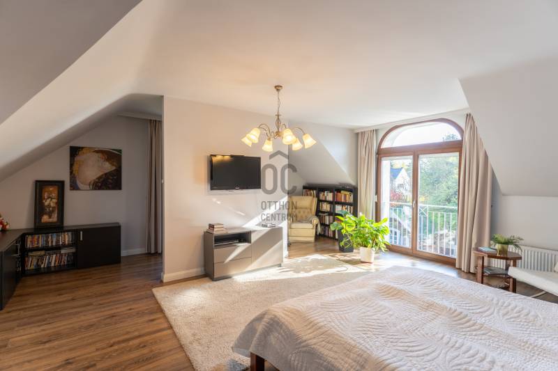 Eladó Pest vármegyében, Budaörs központi, mégis csendes és zöld részén egy nappali + 5 szobás, modernizált, teljes körűen felújított, élhető, praktikus terekkel és intim kerttel rendelkező családi ház. Szívem szerint többet nem is írnék, mert ez tényleg egy olyan ingatlan, amit látni, érezni, megtapasztalni kell, minden másra ott az adatlap és a MasterCard... Ízlésről nem illik vitatkozni, de garantálom, hogy aki megnézi beleszeret.A tulajdonos hölgy belsőépítész, amit a kifinomultság, a sok-sok apró, de jó ötlet híven tükröz.Hogy eleget tegyek a szakmai minimumnak egy-két gondolat, tény és adottság az alábbiakban:- Az elmúlt 4 évben szinte minden felújításra került vagy cserélve lett: a hőszivattyús fűtés és a gáz cirkó kellő rugalmasságot ad, amihez jár a H-tarifa, a napelemhez és az elektromos autótöltéshez pedig kiépítették a kiállásokat, a nyílászárók 3 rétegű üvegezéssel, zsaluziával, redőnnyel és szúnyoghálóval szereltek.- A tető és a homlokzati határoló falak is szigeteltek.- A felújított villamoshálózat mindent elbír, 3x32A és 3x16A bővítést kapott, továbbá új a vízhálózat is.- A több praktikus tárolóhelyiség és a rengeteg beépített minőségi bútor miatt (amik a vételár részét képezik) már alig kell további bútorozásra költeni.- Nemcsak a ház, hanem a nagyobbik kerti tároló is kapott riasztót, így a biciklik és motorok is védve vannak.- Az intim kert automata öntözőberendezést kapott.- A konyhához és étkezőhöz kapcsolódó méretes fedett terasz tavasztól őszig egy plusz családi életteret jelent.Ami az infrastruktúrát illeti, mivel Budaörs központi részén vagyunk, akár gyalogosan, akár tömegközlekedve rengeteg vásárlási lehetőség, szolgáltatás, oktatási intézmény vagy sportolási lehetőség könnyedén elérhető, autóval pedig verhetetlen, hiszen 3-4 percen belül ott az M0, az M1 és az M7, az összes budaörsi megastore, Budapest egy macskaugrás és a Balaton is csak 30-40 perc.Az ingatlan egy házaspár tulajdona, rövid határidővel birtokba vehető.További információért, időpontért keressen akár hétvégén is!Egyedi igényekre szabott lakáshitelekkel állunk rendelkezésére. Bankfüggetlen hitelcentrumunk az országban elérhető összes bank és hitelintézet ajánlatát versenyezteti az Ön számára díjmentesen. Munkatársaink nagy szakmai tapasztalattal várják Önt az előre egyeztetett időpontban akár a normál munkaidő után is.