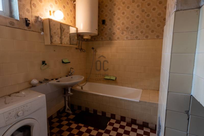 Enyingen, a vasútállomáshoz közel kínálunk megvételre, egy 1980-as években épült, felújítandó, téglafalazatú családi házat.A ház hasznos alapterülete: 88 m2Az ingatlan a következő helyiségekből áll:* kettő tágas szoba* előszoba* közlekedő* konyha+étkező* kamra* fürdőszoba* WCA házban a villanyvezeték, a vízvezeték, valamint a nyílászárók is cserére szorulnak.Az ingatlan fűtése fatüzelésű kandallóval történik, de emellett rendelkezésre áll egy cserépkályha is.A házhoz tartozik egy önálló pince is, ami közvetlenül a konyha alatt található.A telken megtalálhatóak még melléképületek, valamint tárolók és ólak is.A közművek közül a villany és a víz is be van kötve, gáz az utcában található, csatorna nincs.A ház tetőszerkezete fafödémes és cseréppel fedett.Telek mérete: 1487 m2A ház közelében iskola, óvoda, ALDI is megtalálható.Amennyiben a vásárláshoz ingatlant kell eladnia, abban is szívesen együttműködöm Önnel, ha hitelt kell felvennie, BANKFÜGGETLEN hitelszakértőnk áll rendelkezésére.Bővebb infóért várom jelentkezését!Ez az ingatlan a \"Felező csomag\" megbízási portfólióhoz tartozik. Részletek az Otthon Centrum weboldalán.