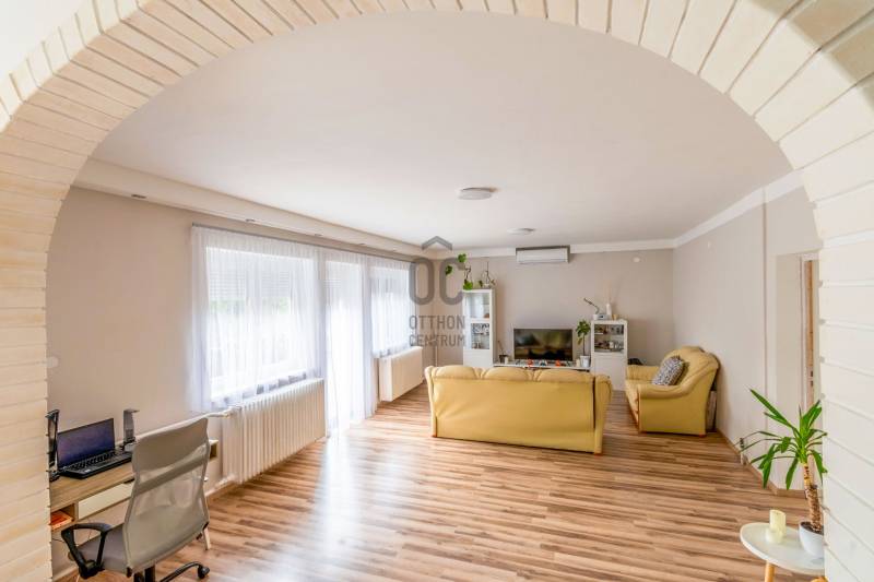 Eladásra kínálunk Enying csendes utcájában egy 155 m2 alapterületű 4 szobás + nappali, 2 fürdőszobás, 2 konyhás, étkezős, téglából épült 2 szintes családi házat.Ideális választás lehet befektetésként, kiadásra vagy többgenerációs együttélésre, saját otthon és egyben vállalkozás működtetésére!Rövid műszaki leírás:* Telek mérete 820nm, közmű: víz, villany, gáz, csatorna* Ház hasznos alapterülete 155 nm, ami magába foglalja földszinten a gyönyörű nagy 33 nm-es nappalit, 2 szobát, előszobát, konyhát-étkezővel, fürdőszobát + kamrát. Az emeleten is kialakítottak 1 konyhát, nappalit, szobát, fürdőszobát * A házhoz tartozik egy 37 nm-es terasz és egy 8 nm-es erkély is* 1989-ben 38-as téglából épült* 2023-ban a ház alsó szintjét teljes körűen felújították. Felújítás alá került a konyha, fürdőszoba, nappali, hálószoba. Ablakokat 3 rétegű műanyag ablakokra cserélték, valamint a villany, vízvezetékeket is kicserélték* 2025 őszén elkészül a födém szigetelése is* Ház fűtése: gázkazán + vegyestüzelésű kazán, radiátoros hőleadással, konyhában padlófűtés* Melegvizet gázbojler biztosítja* Nappaliban hűtő-fűtő klíma található* Nyílászárók: redőnnyel felszerelt műanyag és fa ablakok, fa beltéri ajtók* Burkolat: nappaliban, szobákban laminált parketta, konyhában és a többi helyiségben járólap* Tetőszerkezet betongerendás, cseréppel fedett* Villany: 3 fázis, (16 A,10 A,6 A), éjszakai áram is elérhető* A ház alatt garázs, műhely, gépészeti helyiség helyezkedik el * Udvaron melléképület, tároló is megtalálható.Finanszírozás:Az ingatlan alkalmas CSOK Plusz igénybevételére, valamint 3%-os kamatozású államilag támogatott hitellel is megvásárolható – így ideális választás családalapításon gondolkodó fiatal párok számára is.Lokáció:A ház Fejér megyében, Enying város központi csendes részén található, ahonnan mindössze 8 km-re elérhető a Balatonvilágosi szabadstrand, így akár napi szinten is élvezhető a balatoni nyár. A városban minden fontos szolgáltatás elérhető: óvoda, iskola, orvosi rendelő, üzletek, éttermek, sportolási lehetőségek – minden adott, ami egy család kényelmes életviteléhez szükséges.Ha bármilyen kérdése van az ingatlannal vagy a vásárlási folyamattal kapcsolatban, ne habozzon, hívjon!!! Az ingatlanpiac folyamatosan változik, és ez a lehetőség most az Ön kezében van!Ha a vásárláshoz a jelenlegi ingatlana eladására van szükség, akkor abban is szívesen együttműködöm Önnel!Amennyiben hitelre van szüksége, az Otthon Centrum az ország egyik legnagyobb és legmegbízhatóbb hitelközvetítőjeként, teljes körű és díjmentes hitel ügyintézéssel áll rendelkezésére.Kérje személyre szabott ajánlatunkat!Enying, CSOK, két generációs, 4 szobás, felújított, két szintes, nagycsaládosok, 150 nm, 3% hitel, lehetőségEz az ingatlan a \"Felező csomag\" megbízási portfólióhoz tartozik. Részletek az Otthon Centrum weboldalán.