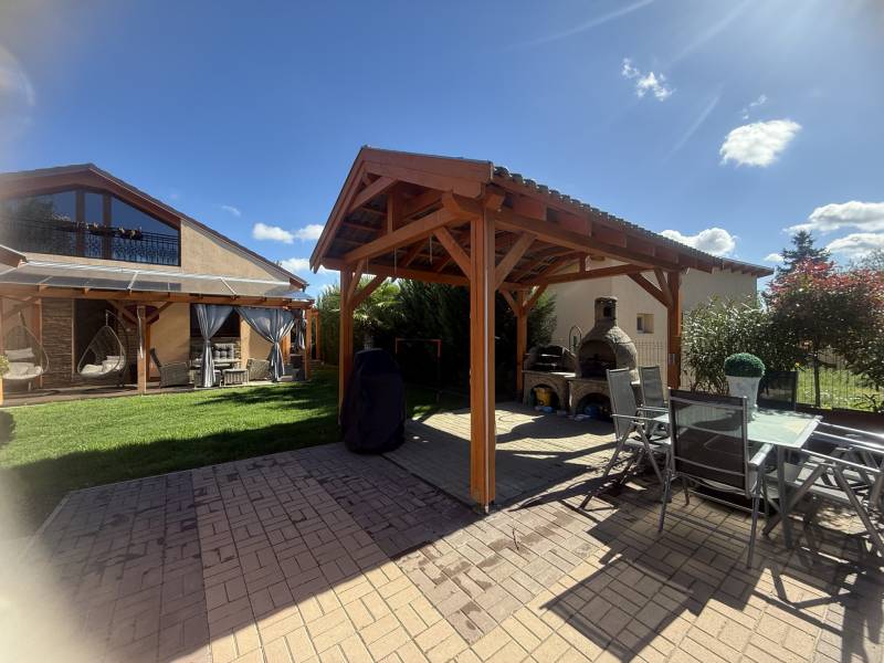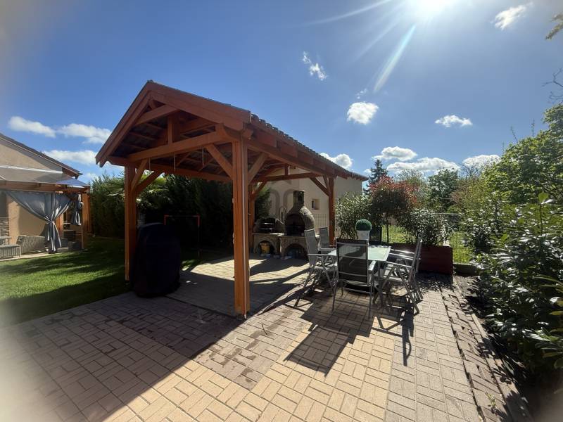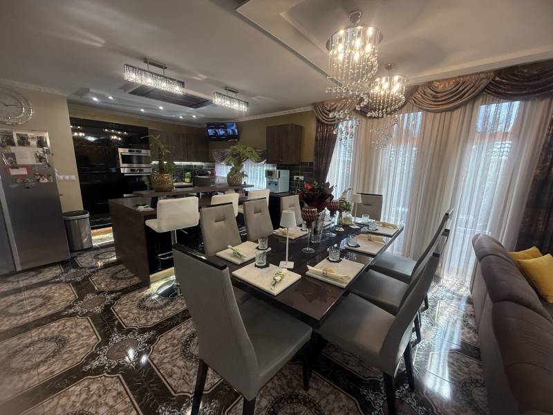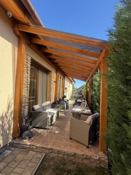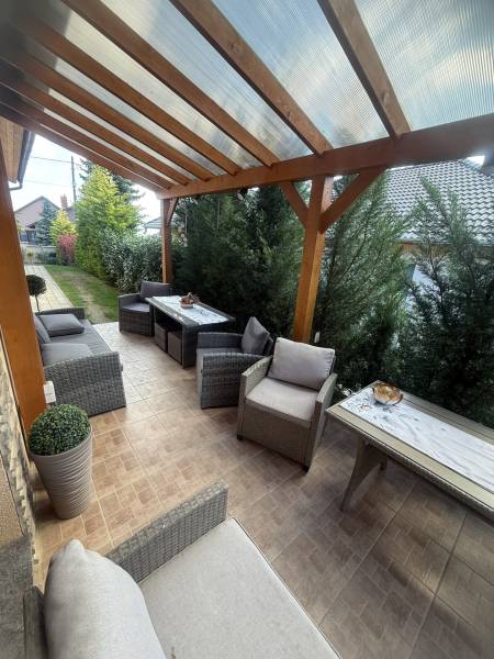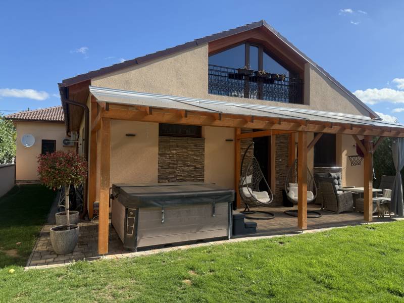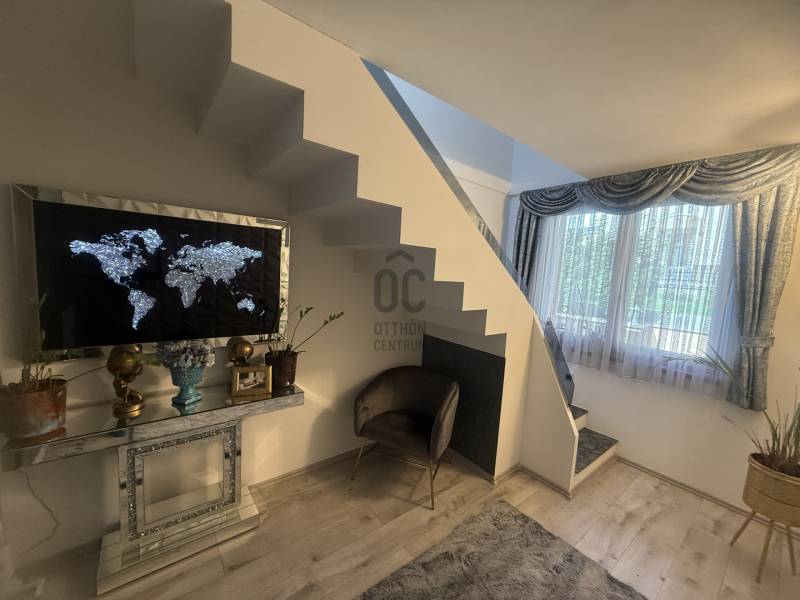 Csak Nálunk, csak az OTTHON CENTRUMNÁL!Győrújbarát központi, de mégis csendes panorámás zsákutcájában kínálok eladásra egy nagyon impozáns, modern, minden igényt kielégítő családi házat.Ha, újszerű házat keresel, örök panorámával, egyedi stílussal berendezve? Akkor jó hírem van, mert ez a ház Neked szól, ilyet nem látsz mindennap az ingatlanpiacon.Hogy miért, már mondom is, - 880 m2-es gyönyörűen parkosított, körbekerített telek- egyedi díszfák, növények, pálmafák- térkövezett udvar- kiépített öntözőrendszer- a ház nettó lakótere 280 m2- napelem rendszer segítségével, a ház fenntartása minimális - klimatizált- a ház melegéről padlófűtés gondoskodik- alsó szinten 2 hálószoba, emeleten szintén - a tágas garázsban 2 autó is elfér- egyedi burkolatok, egyedi bútorok- a kertben hangulatos bográcsozó, grillező és jakuzzi található- a házban lévő bútorok a vételár részét képezikÉlőben a ház még extrább, még látványosabb. Hívj, és mutatom, elérhető vagyok a hét mindennapján!Hitelre van szüksége?Az Otthon Centrum az ország egyik legnagyobb és legmegbízhatóbb hitelközvetítőjeként,teljes körű és díjmentes hitelügyintézéssel, biztosításkötéssel áll rendelkezésére!Kérje személyre szabott ajánlatunkat Kollégáinktól!
