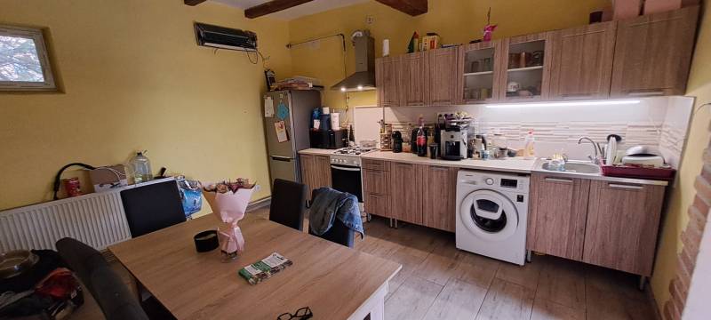 Tisztelt Érdeklődő!Ha olyan otthont keres, ahol a nyugalom és a kényelem egyszerre jelen van, akkor ez a csanádpalotai családi ház éppen Önnek szól.Az Asztalos P. Kálmán utcában található ingatlan mindössze pár percre van a városközponttól – autóval és kerékpárral is pillanatok alatt elérhető minden, amire a mindennapokban szüksége lehet.A vegyes falazatú, 106 m²-es ház két tágas szobával, konyhával, kamrával, fürdőszobával, közlekedőkkel és előszobával várja új tulajdonosát. A helyiségek burkolatai igényesek: a szobákban laminált padló, máshol járólap, a kamrában pedig betonburkolat található. A fűtés gázkazánnal megoldott radiátorokon keresztül, amely a meleg vizet is biztosítja, így minden adott az otthonos, kényelmes mindennapokhoz.A ház, részben megújult, a kamra és a hátsó közlekedő befejezésre vár. A felújított részen már korszerű műanyag nyílászárók lettek beépítve, míg a még befejezésre váró területeken a régi fa ablakok és ajtók maradtak meg.Az ingatlan teljes közművel rendelkezik: a villamosenergia, a vezetékes víz, a csatorna és a gáz mind be van kötve, így új tulajdonosnak nem kell további beruházásokkal számolnia.A 842 m²-es telek mérete ideális: elég nagy ahhoz, hogy kényelmesen élhessen, mégis könnyen gondozható. Az udvaron fedett terasz és tároló is található, bár ezek későbbi bontása elképzelhető. Az ingatlan folytatásában egy 91 m²-es, téglaépítésű, betonozott tároló kapott helyet, amely sokrétűen hasznosítható, akár műhelynek, akár hobbiszobának is.Energetikai tanúsítvány: vanEnergetikai besorolás: GCO2 kibocsátás: GA ház 90 napos határidővel költözhető.Ha élhető, csendes környezetben szeretne otthonra találni, ne habozzon!Hívjon most, és foglaljon időpontot a megtekintésre!Csanádpalotáról bővebben itt: http://www.csanadpalota.huLegyen tisztában pénzügyeivel, mielőtt elkötelezi magát! Ebben díjmentesen az Ön rendelkezésére áll bankfüggetlen hitelközvetítőnk.Vevőinket profi és kedvező díjazású ügyvédi háttérrel is segítjük a szerződéskötés során.Az ingatlanról rövid bemutató videó is készült. Ha ezt a hirdetést az Otthon Centrum weboldalán nézi, akkor a videó azonnal indítható a képgaléria elején. Ha egy másik weboldalon találta ezt a hirdetést, kérem, nyissa meg az Otthon Centrum weboldalát, kattintson a „Regisztrációs szám keresése” menü pontra, és írja be ezt a regisztrációs számot a keresőbe: H509305 Itt meg tudja tekinteni az ingatlanról készült videót és még több képet, vagy írjon nekem, és szívesen elküldöm a felvételt, képeket.#otthoncentrummako #makoiingatlan #csanadpalotaeladohaz #ingatlan #otthoncentrum #eladohaz #ingatlanpiac #nyugalom #hagymatikum #forsale #oc #hitel #ocmako #biztositas #realestate #veledmindenlepesnel #kerteshaz #csaladihaz #ingatlankozvetites #almokatepitunk #falusicsok