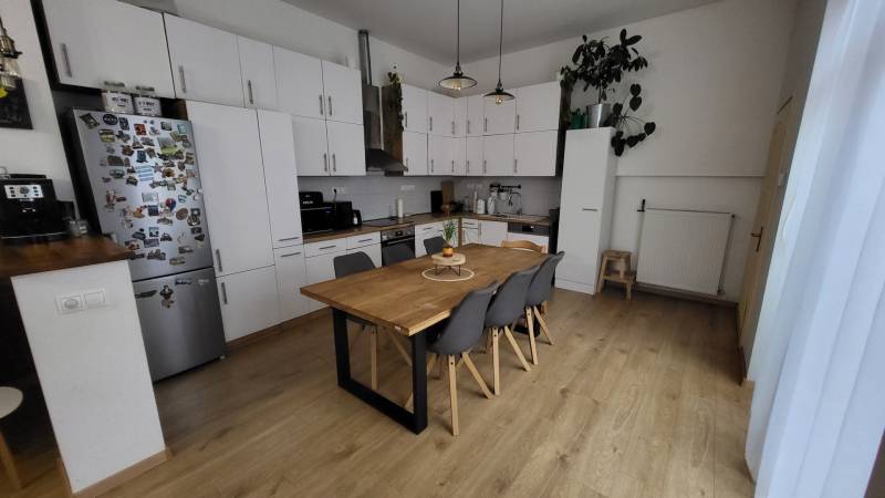 Debrecen kedvelt belvárosi részén eladó egy kitűnő állapotú és elrendezésű, 90 m²-es, napfényes házrész önálló terasz kapcsolattal. -beton alapon 50 cm-es tégla falazat +10 cm-es hőszigetelés,-új tetőszerkezet betoncserép héjazattal-felújított elektromos hálózat-műanyag nyílászárók, redőny, klíma-fűtése: kondenzációs kazánnal-90 m² alapterület + 11 m² terasz-76 m² saját pince (több helyiség kialakítással, sportolásra, borospincének, stb)-160 m² elkerített, saját parkosított kert öntözőrendszerrel, 240x90-es süllyesztett medencével-20 m²-es faszerkezetes garázs-filagória sütőhellyelTökéletes infrastruktúra, belvárosi lokáció, minden a közelben. Csendes környék, kellemes otthon.