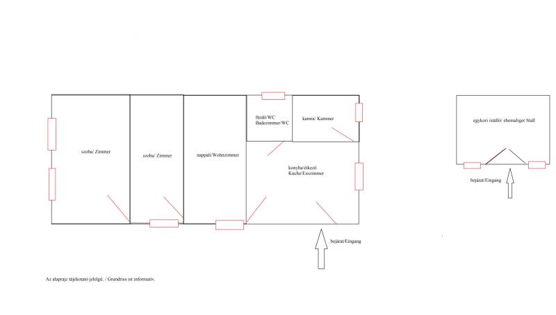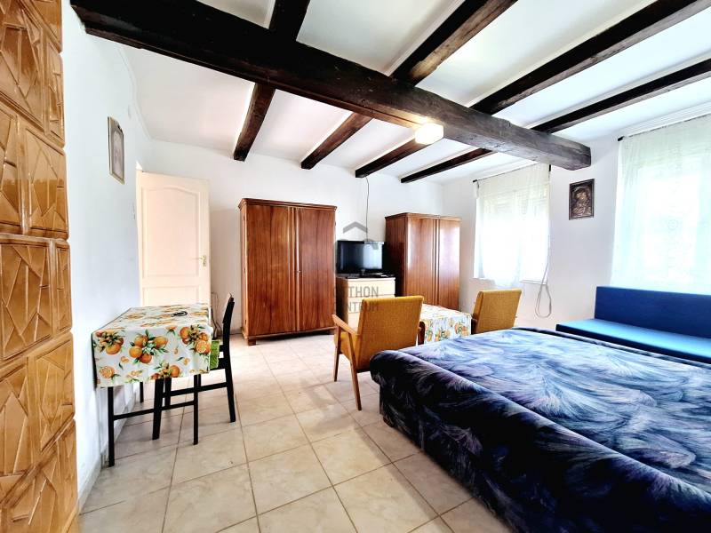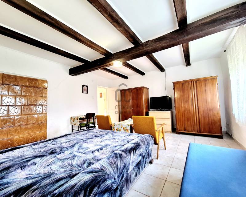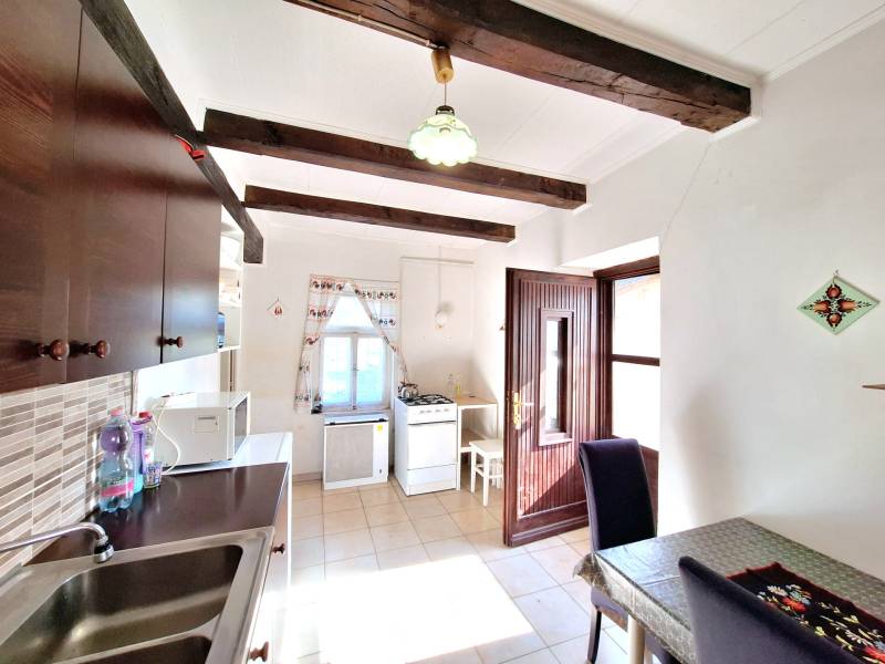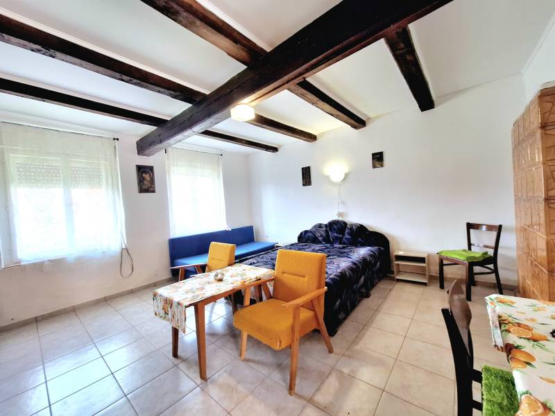 3% OTTHON START ÉS FALUSI CSOK IGÉNYELHETŐSomogy vármegyében, az M7 autópálya közvetlen közelében, Szőkedencs csendes és nyugodt környezetében kínálunk 3 szobás parasztházat eladásra, amely ideális választás lehet minden korosztály számára, akik szeretnék élvezni a vidéki élet nyugalmát és szépségeit.Az épület 3 szobával rendelkezik, kényelmes otthona lehet családoknak, de befektetési célokra is remek lehetőséget kínál. A telek mérete 2158 nm, ami elegendő teret biztosít a szabadidős tevékenységekhez, kertészkedéshez. Az ingatlanban az elmúlt évek során több felújítás történt, a leendő tulajdonos saját ízlése szerint alakíthatja ki a belső tereket. A fűtés gázkonvektorral és cserépkályhával történik, ami kényelmes és gazdaságos megoldás a téli hónapokban. Szőkedencs egy nyugodt, biztonságos település, ahol a közlekedési lehetőségek is kedvezőek. Az autóval való közlekedés egyszerű, a 7-es főút és az M7 autópálya gyors hozzáférést biztosítanak a környező városokhoz, a helyi buszjáratok lehetővé teszik a tömegközlekedést is. az ingatlan főbb jellemzői:- kiváló megközelíthetőség- csendes, természetközeli fekvés- belterület- Ingatlan nyilvántartás szerint: KIVETT LAKÓHÁZ, UDVAR, GAZDASÁGI ÉPÜLET- 76nm alapterület- 1950-es években épült vegyes falazatú, döntő többségben tégla épület- földszintes parasztház látszó gerendákkal- fa nyílászárók- cseréptető- a fűtés 2 gázkonvektorral és cserépkályhával biztosított- meleg víz ellátása villanybojlerrel történik- a fürdőszoba 2010-ben került kialakításra- a konyha kb 3 éve újult meg- kémény 3 éve lett újra rakva- jelen állapotában is egész évben lakható- az épület főképp homlokzati felújítást igényel, leendő tulajdonosa saját ízlése szerint alakíthatja ki - 2.158 nm a telek nagysága- körbe kerített- vezetékes villany, víz, gáz bevezetve, szennyvíz elvezetése zárt emésztőben történik- az udvarban található egykori tégla istálló további bővülésre ad lehetőséget (32nm)- a melléképület tetőzete felújításra került- a kert bőséges teret kínál a szabadidős tevékenységekhez, kertészkedéshez, gyümölcsös kialakításához- a telek hátsó részében akácos található- külön hátsó útról is könnyen megközelíthetőaz épület elosztása:- a lakóházban 3 különálló szoba található ( 2 háló és 1 nappali)- fürdőszoba/ WC- konyha/étkező- nagy méretű kamra, padlásfeljáróvalSzőkedencs egy csendes, barátságos 260 fős kistelepülés, ahol a természet közelsége és a friss levegő garantálja a nyugalmat. A település biztonságos, és az itt élők közössége összetartó. A közlekedés is kedvező, hiszen a közeli városok, mint például Keszthely, Marcali, Nagykanizsa kb 20 percen belül megközelíthetők autóval és tömegközlekedéssel is. Zalakaros gyógyfürdő 15 kilométerre található. A legközelebbi vasútállomás Zalakomárban elérhető. A közeli boltok, orvosi rendelő, könyvár, 2 templom és egyéb szolgáltatások pedig megkönnyítik a mindennapi életet. A Kis-Balaton közelében a falu nevezetessége a temetőben található közel 700 éves hársfa.Ez az ingatlan egy lehetőség arra, hogy egy olyan helyen éljen, ahol a természet közelsége és a csendes életvitel harmóniában találkozik. Ha Ön is szeretne többet megtudni erről az ajánlatról, várjuk hívását!Az adatok és alaprajz tájékoztató jellegű.